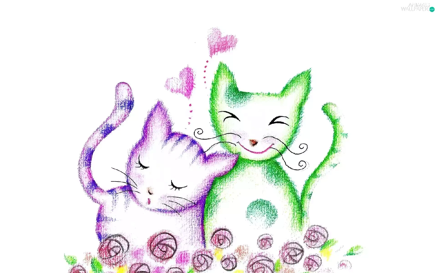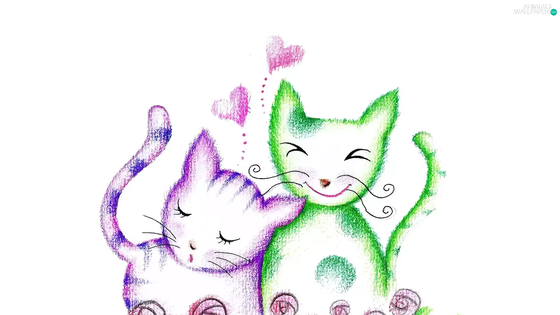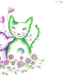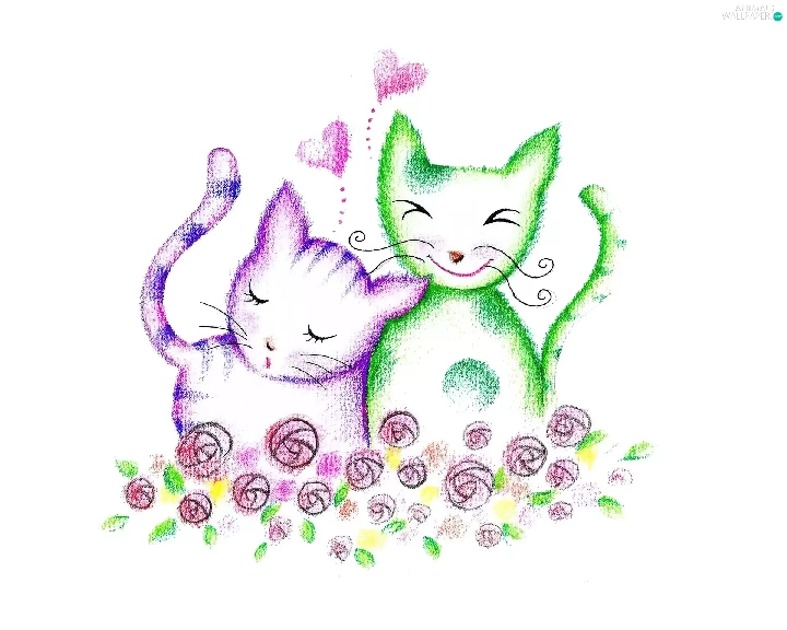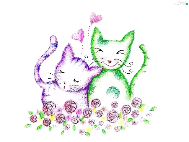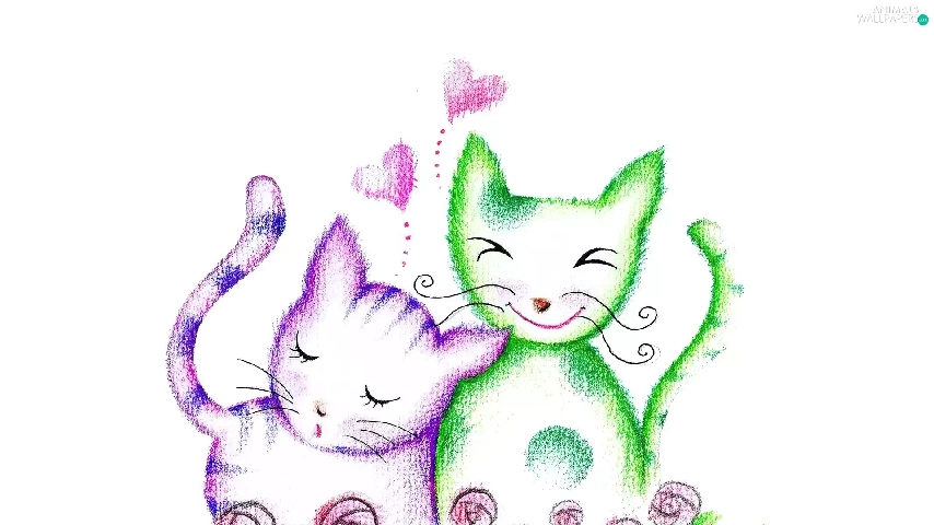 Green, Drawing, puss, Pink, Two cars