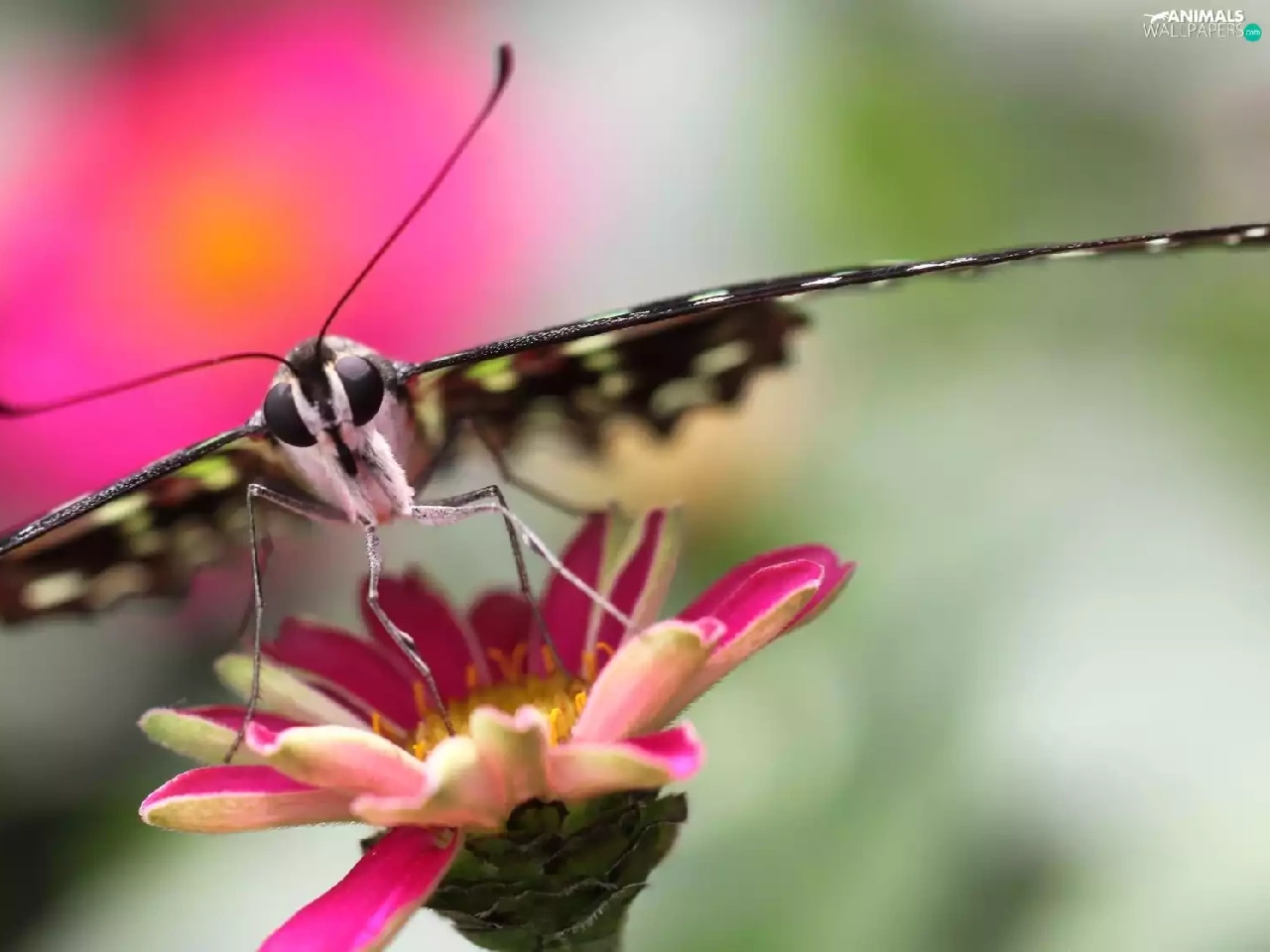 Colourfull Flowers, butterfly, Pink