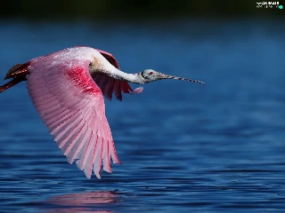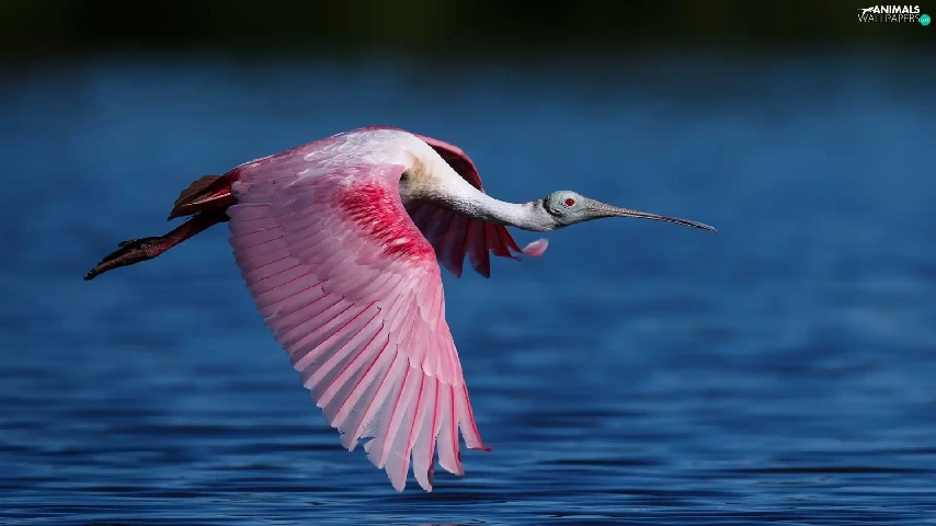 flight, Bird, Pink Spoonbill