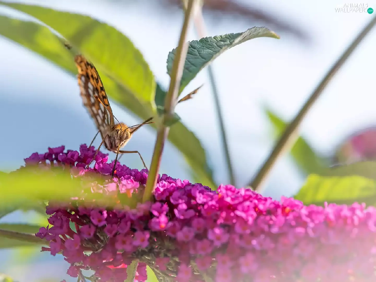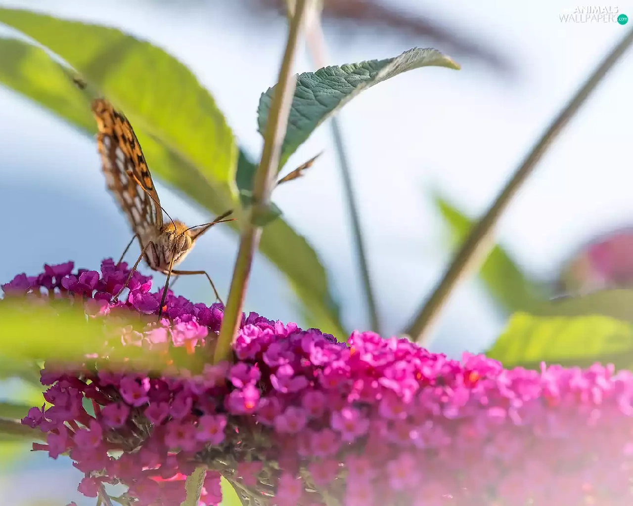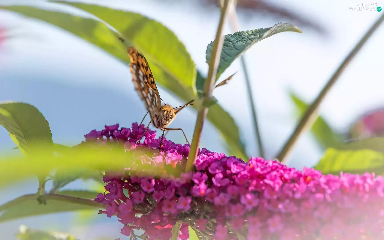 butterfly bush, leaves, Pink, Colourfull Flowers, butterfly
