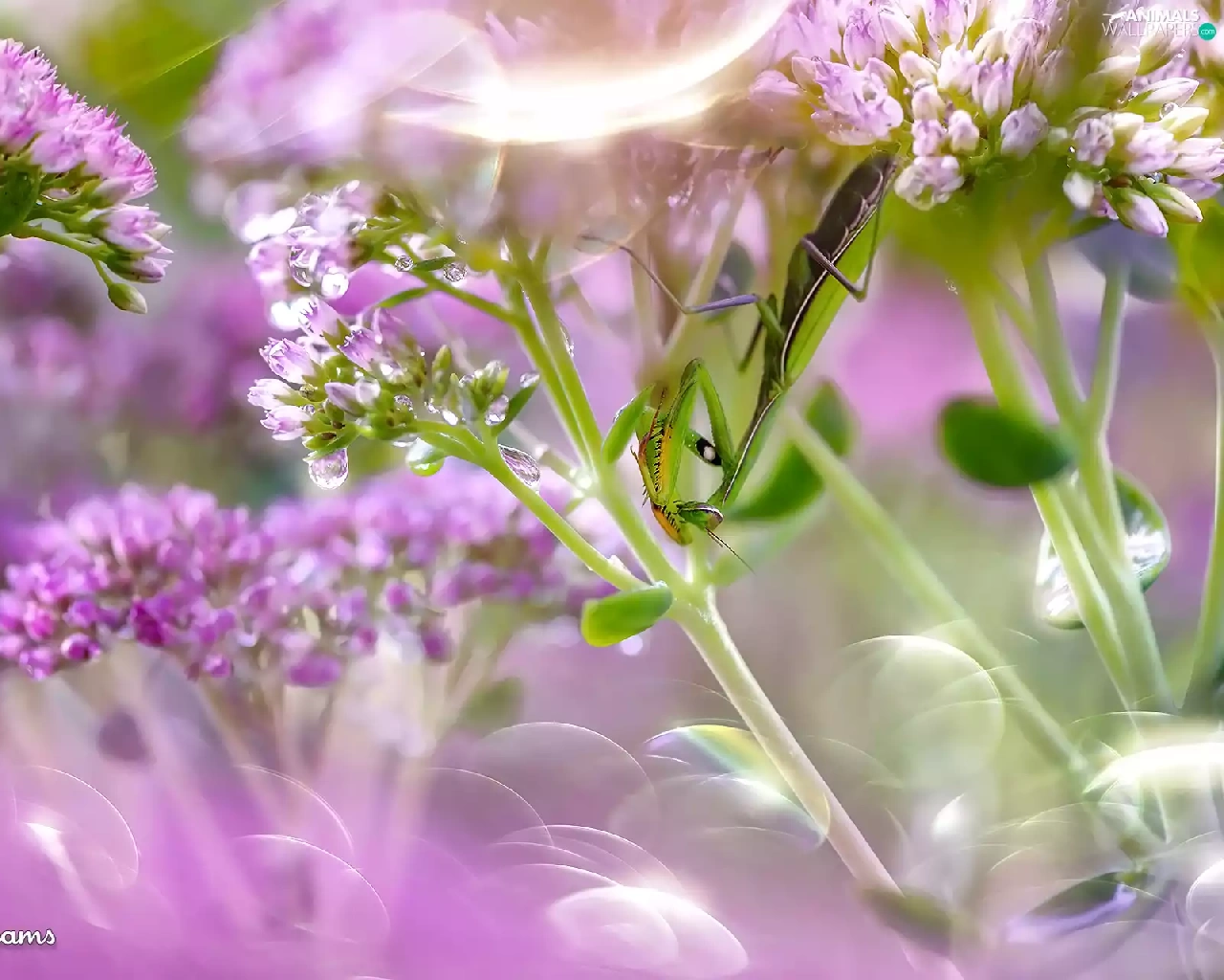 mantis, Flowers, blur, Pink