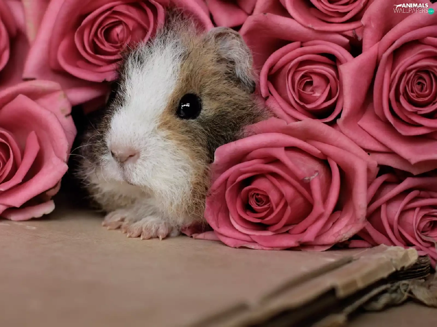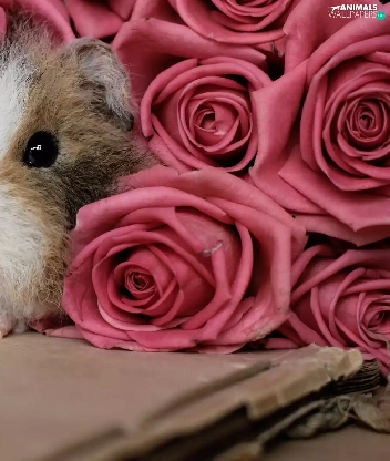 roses, guinea pig, Pink