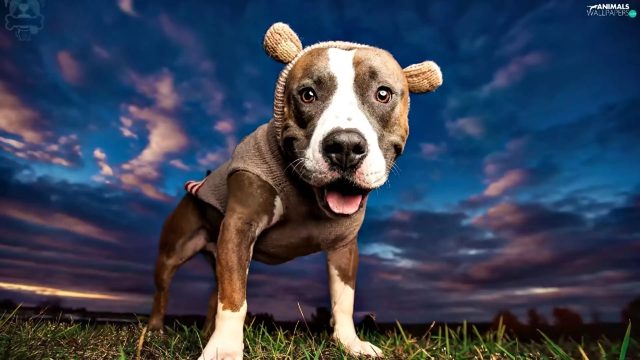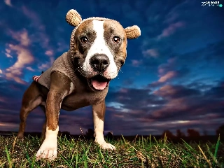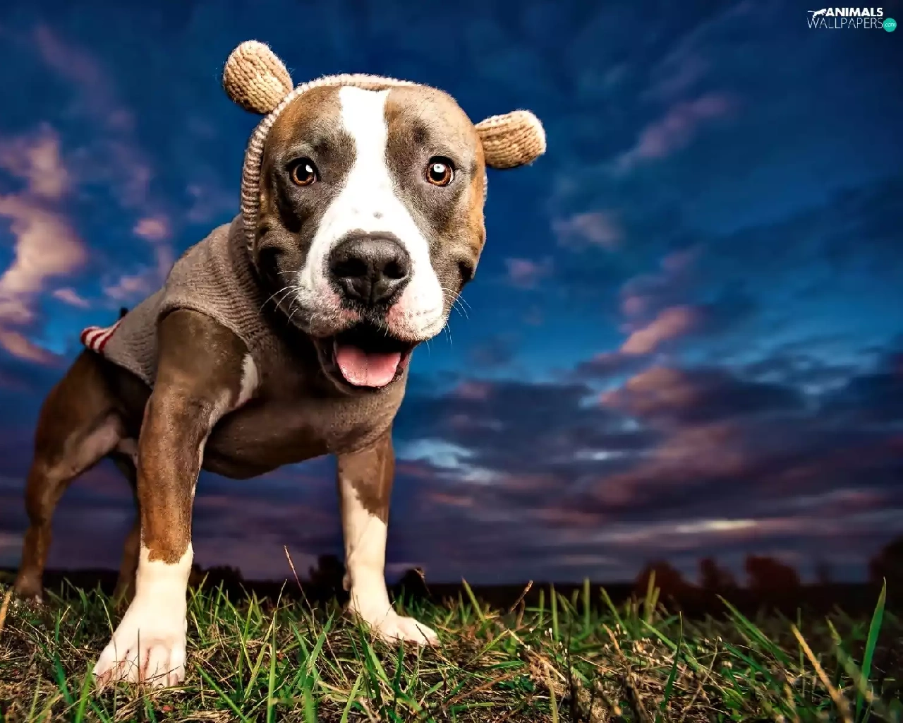 dog, grass, Sky, Pit Bull Terrier