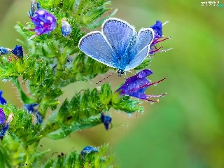 blue, Blossoming, plant, butterfly