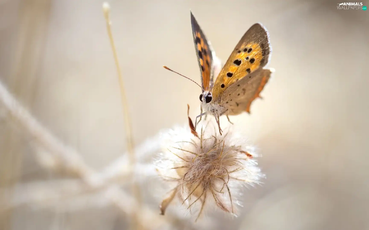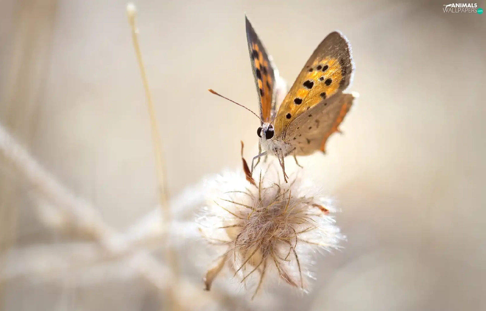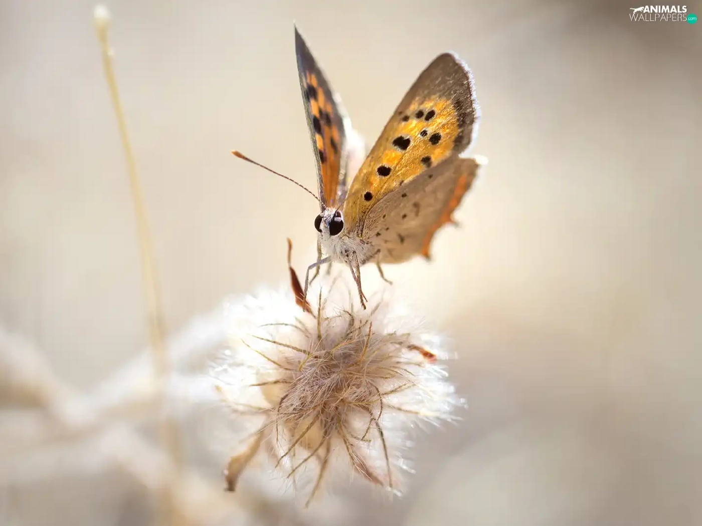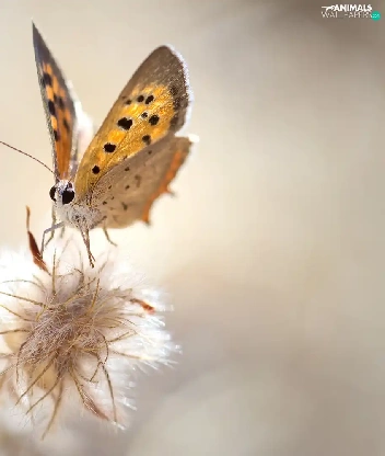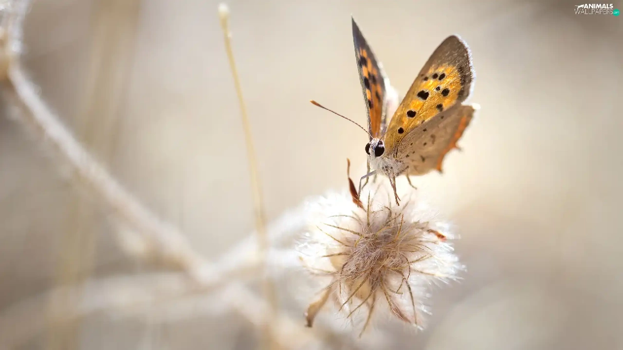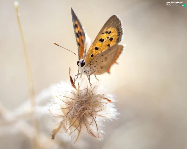Close, American Copper, plant, butterfly