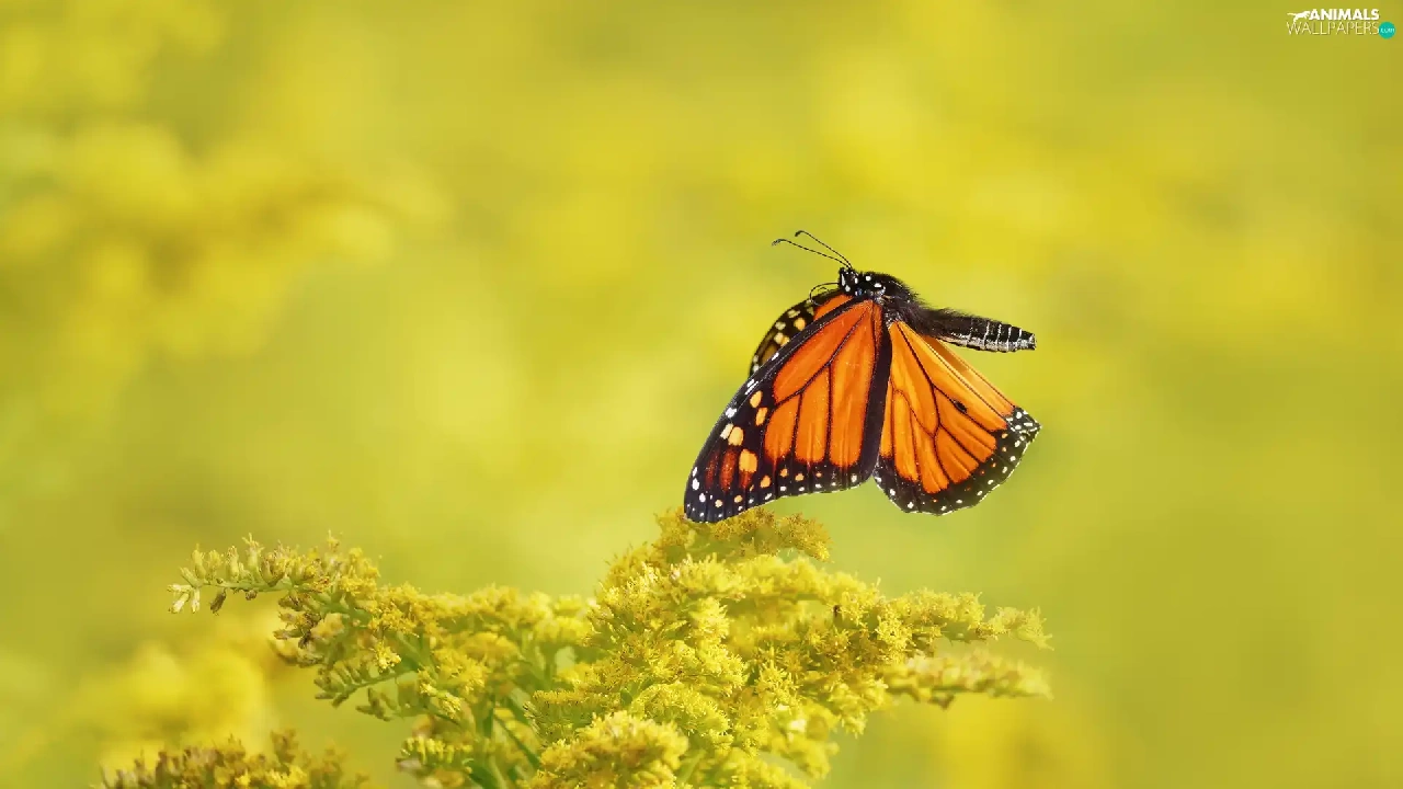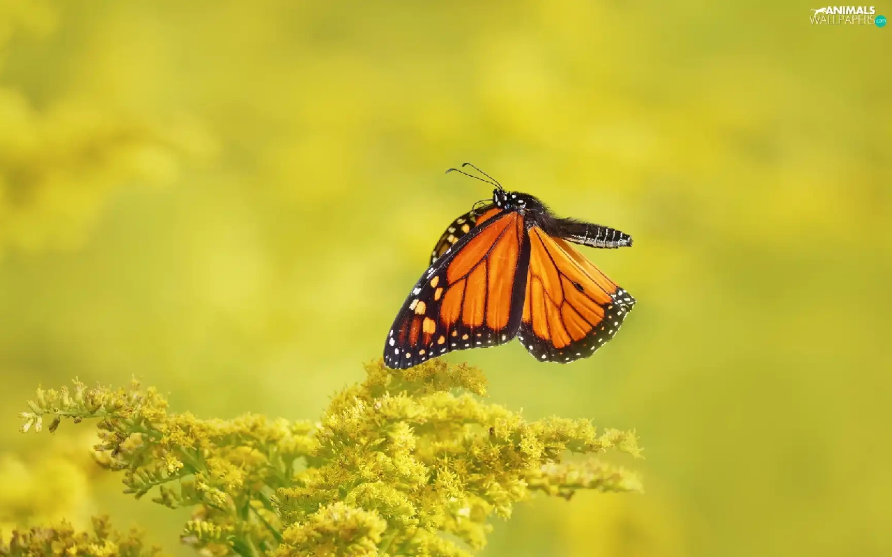 butterfly, Yellow Honda, plant, Monarch Butterfly