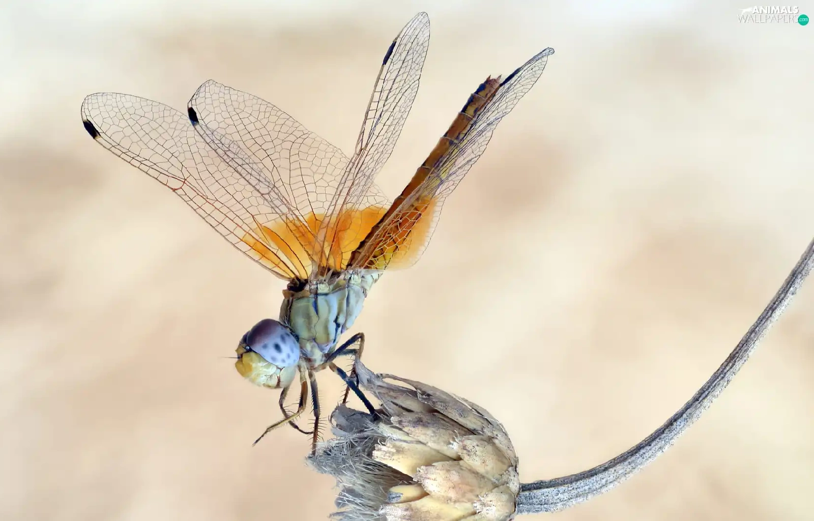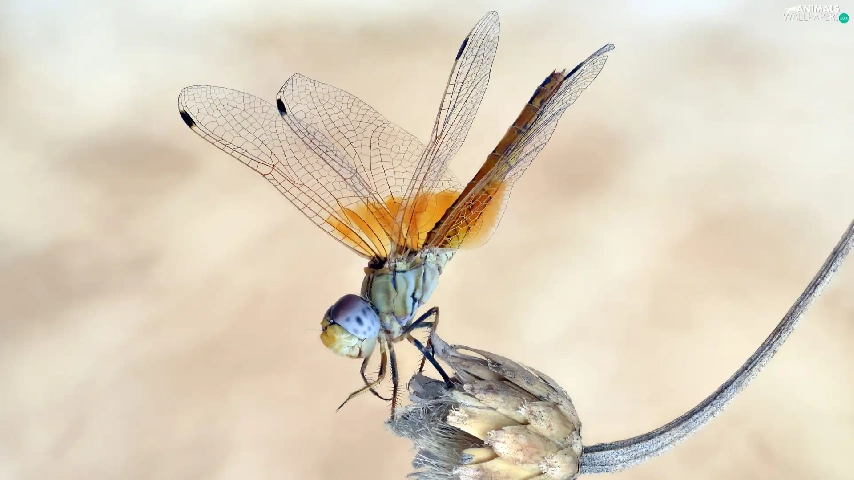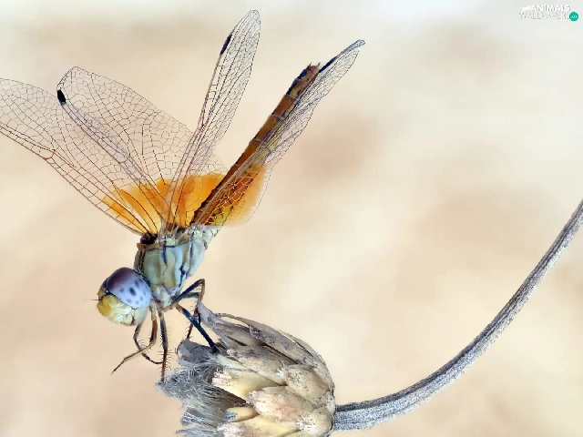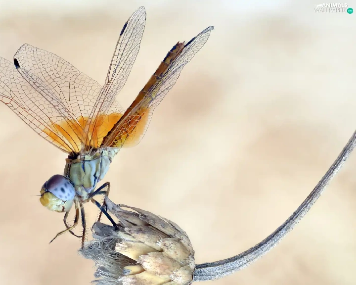 Close, dragon-fly, plant