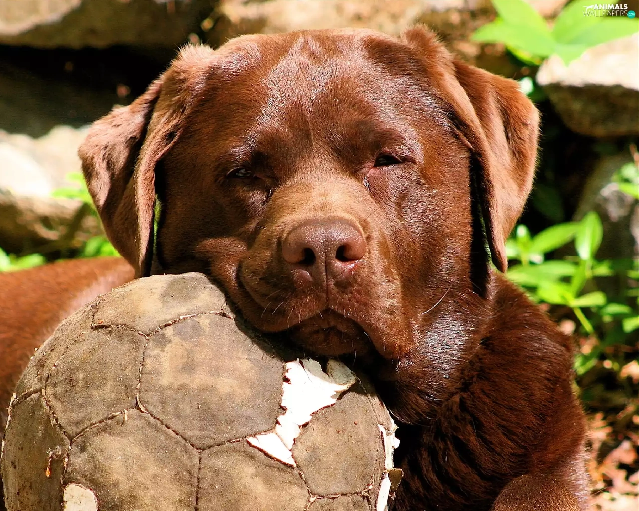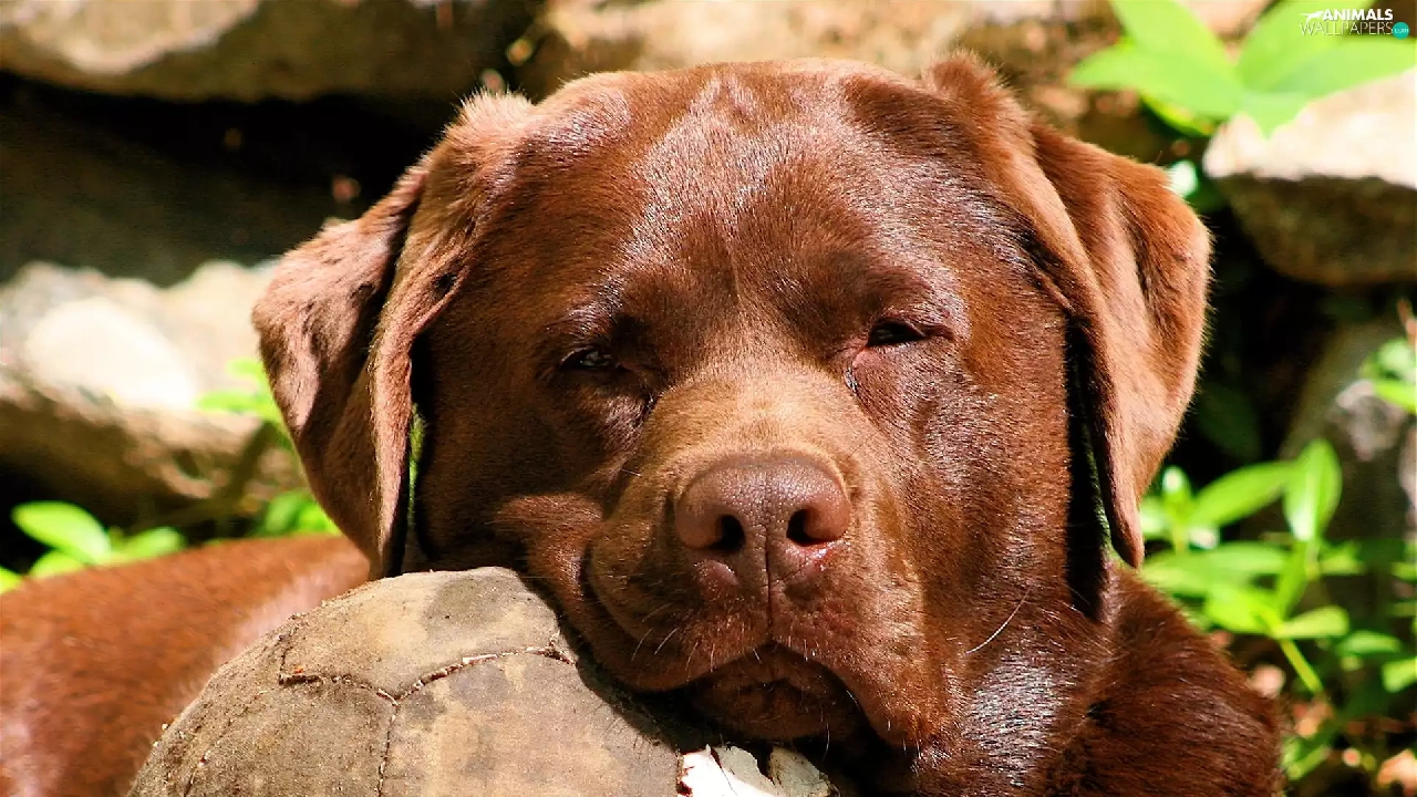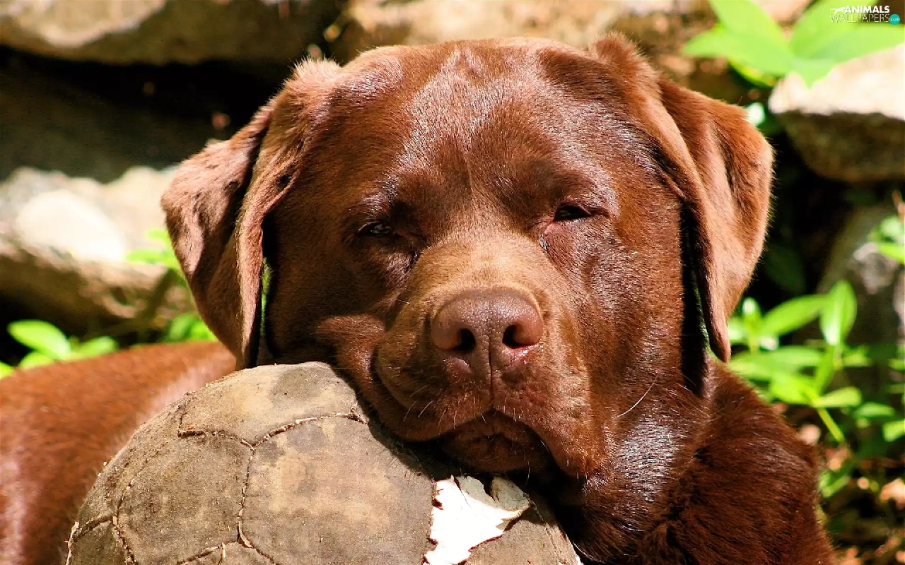 Plants, dog, Ball