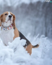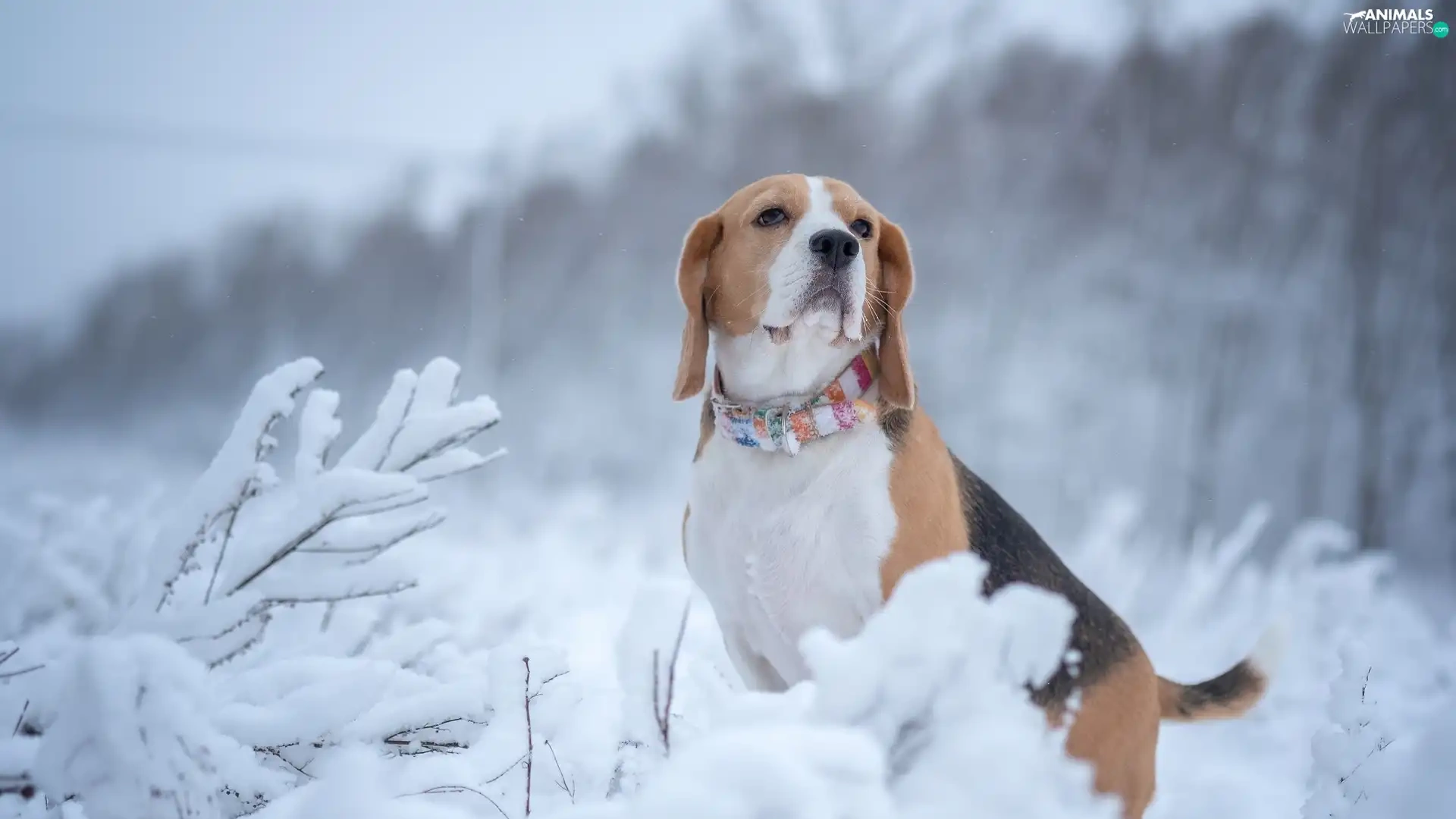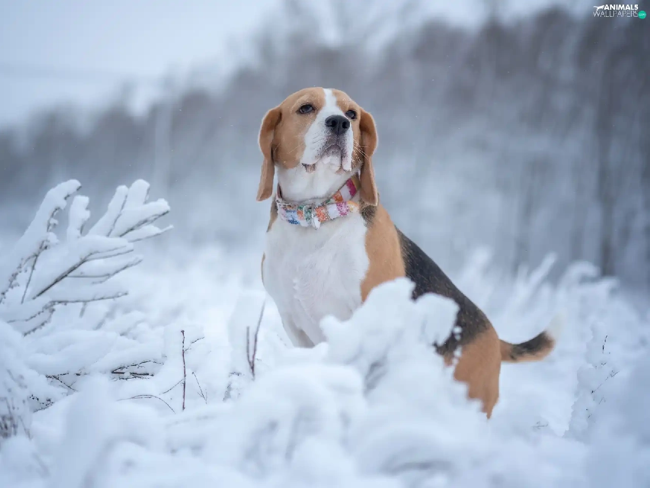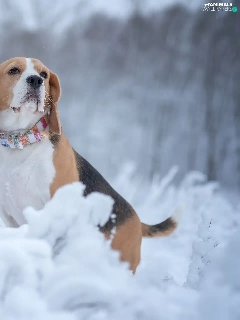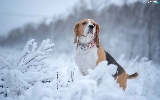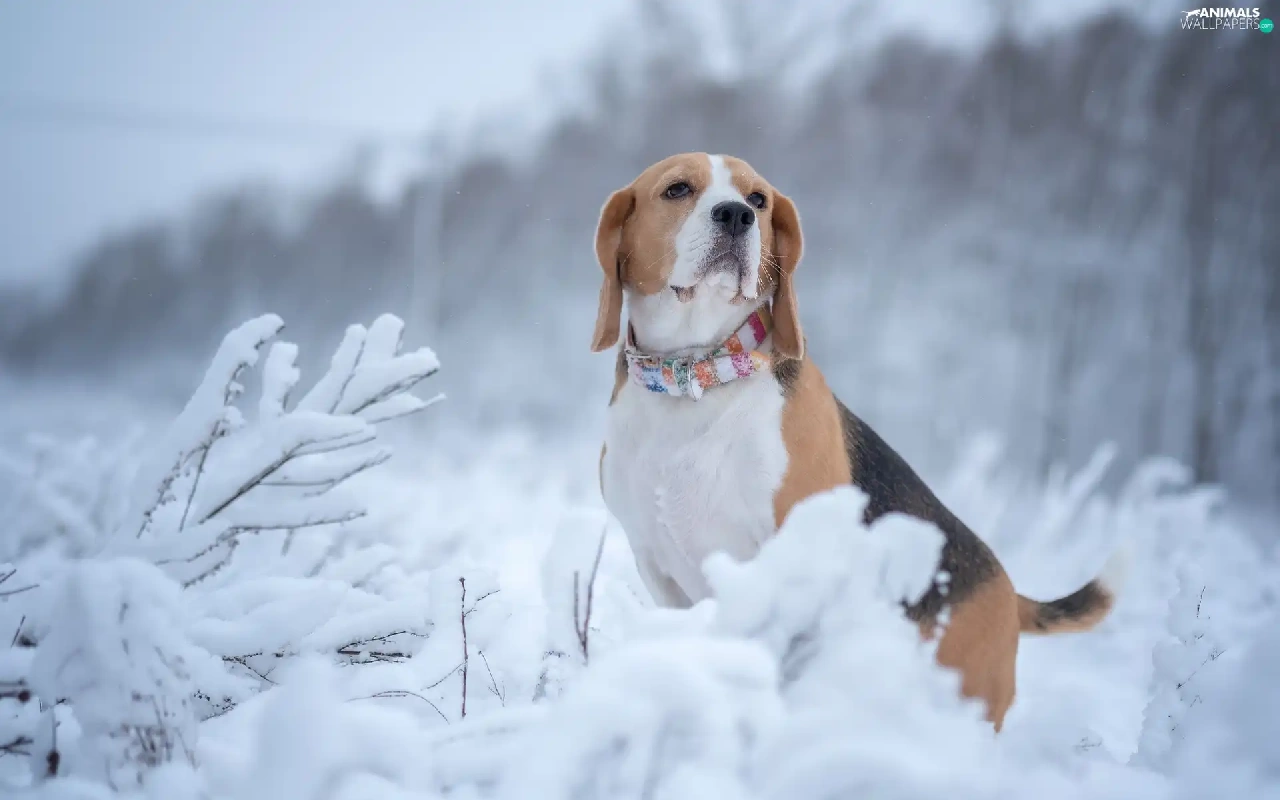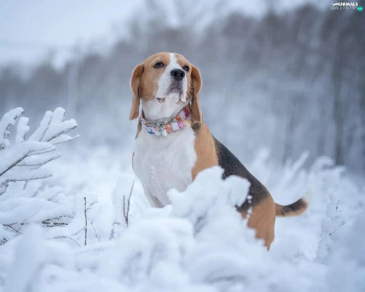 Snowy, Plants, Beagle, winter, dog