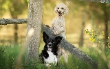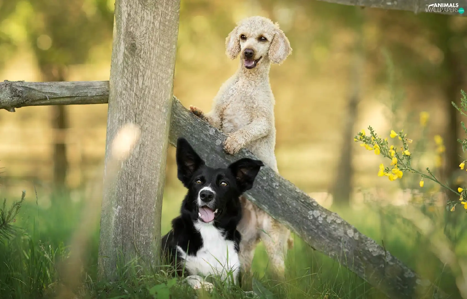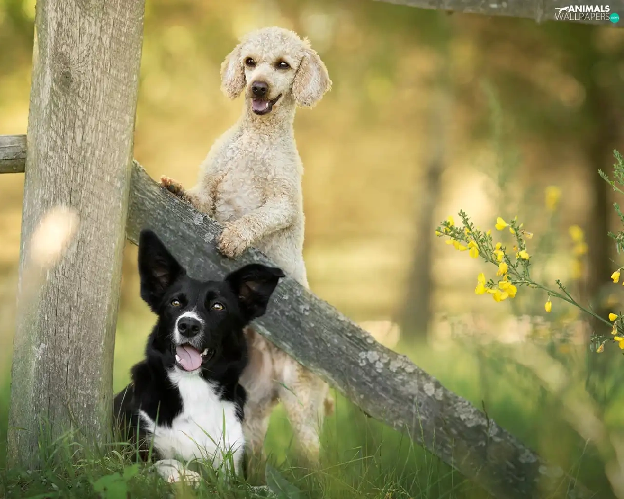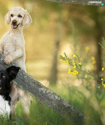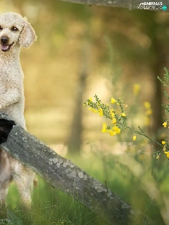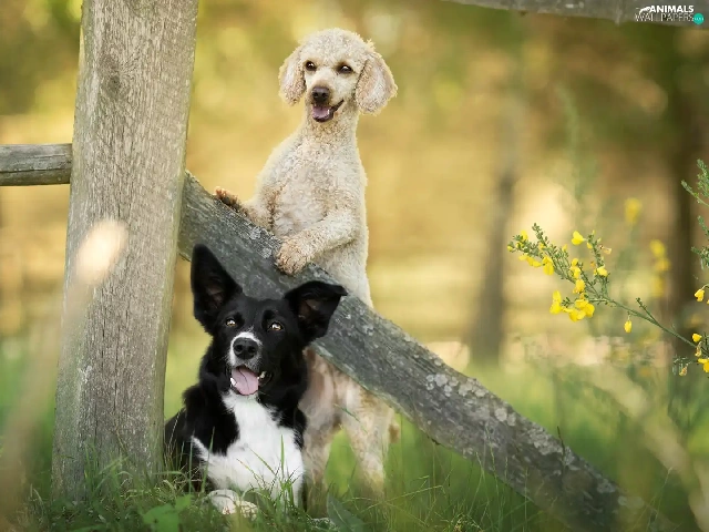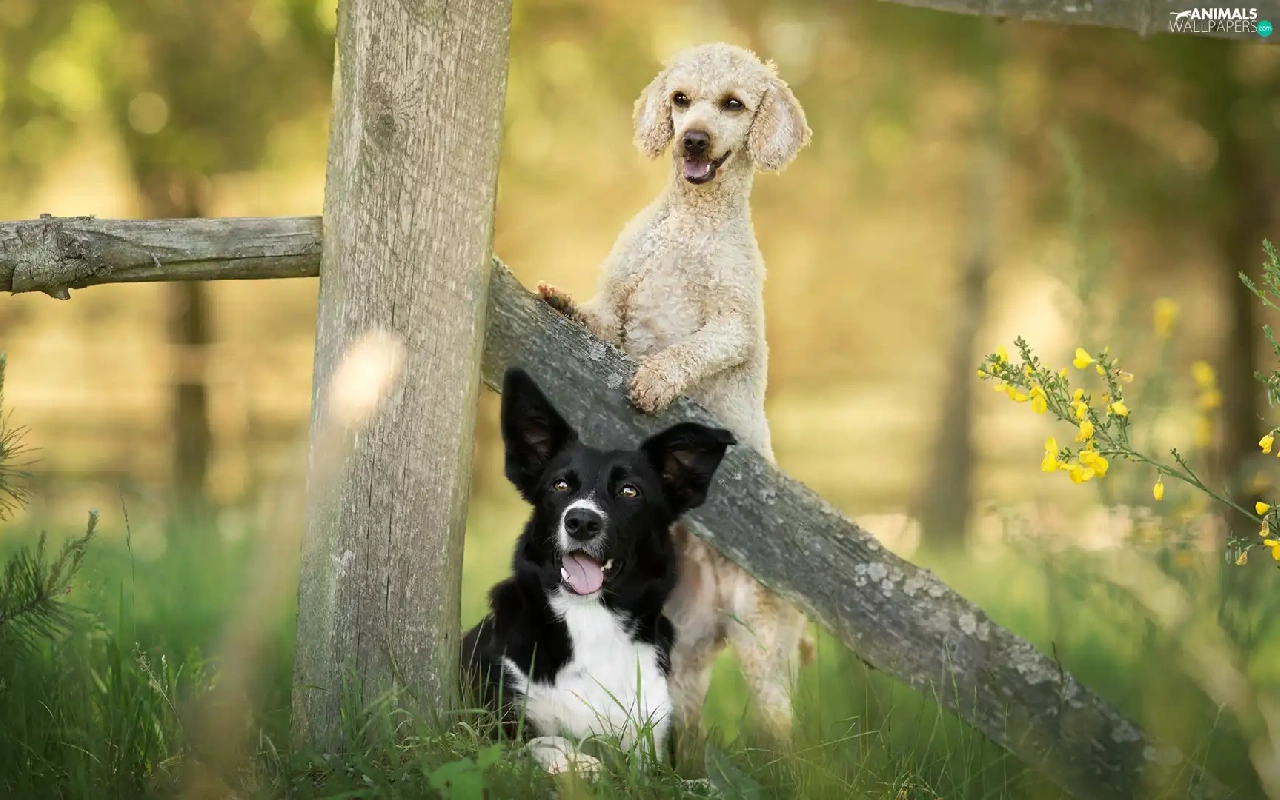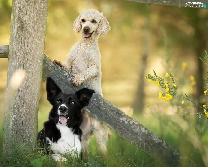 Fance, Border Collie, Flowers, poodle, Dogs, grass, Plants