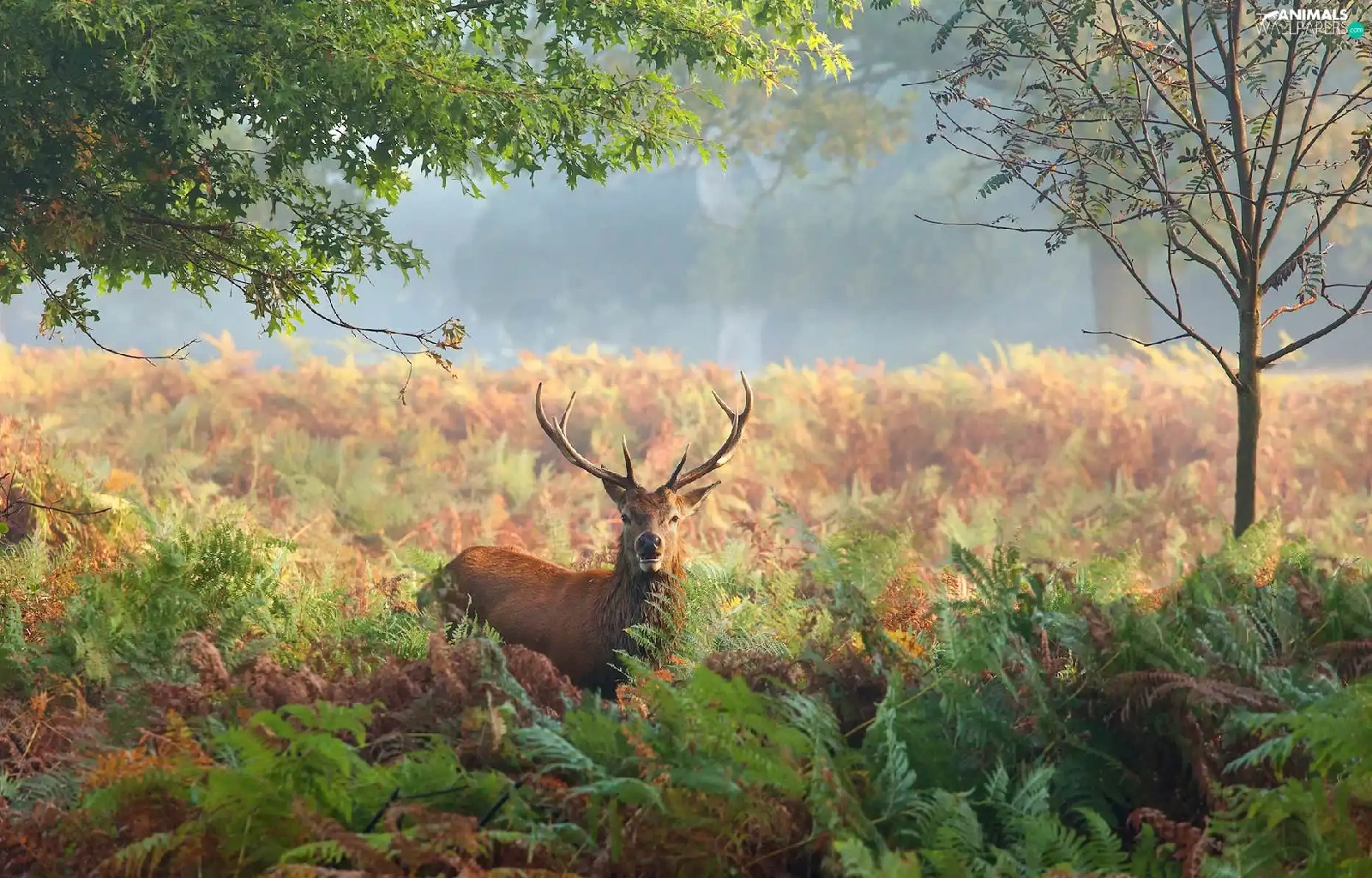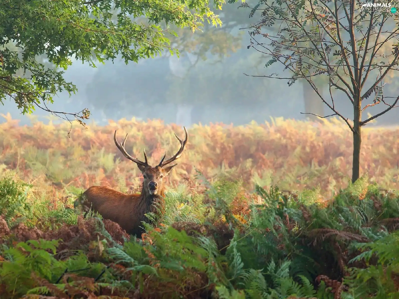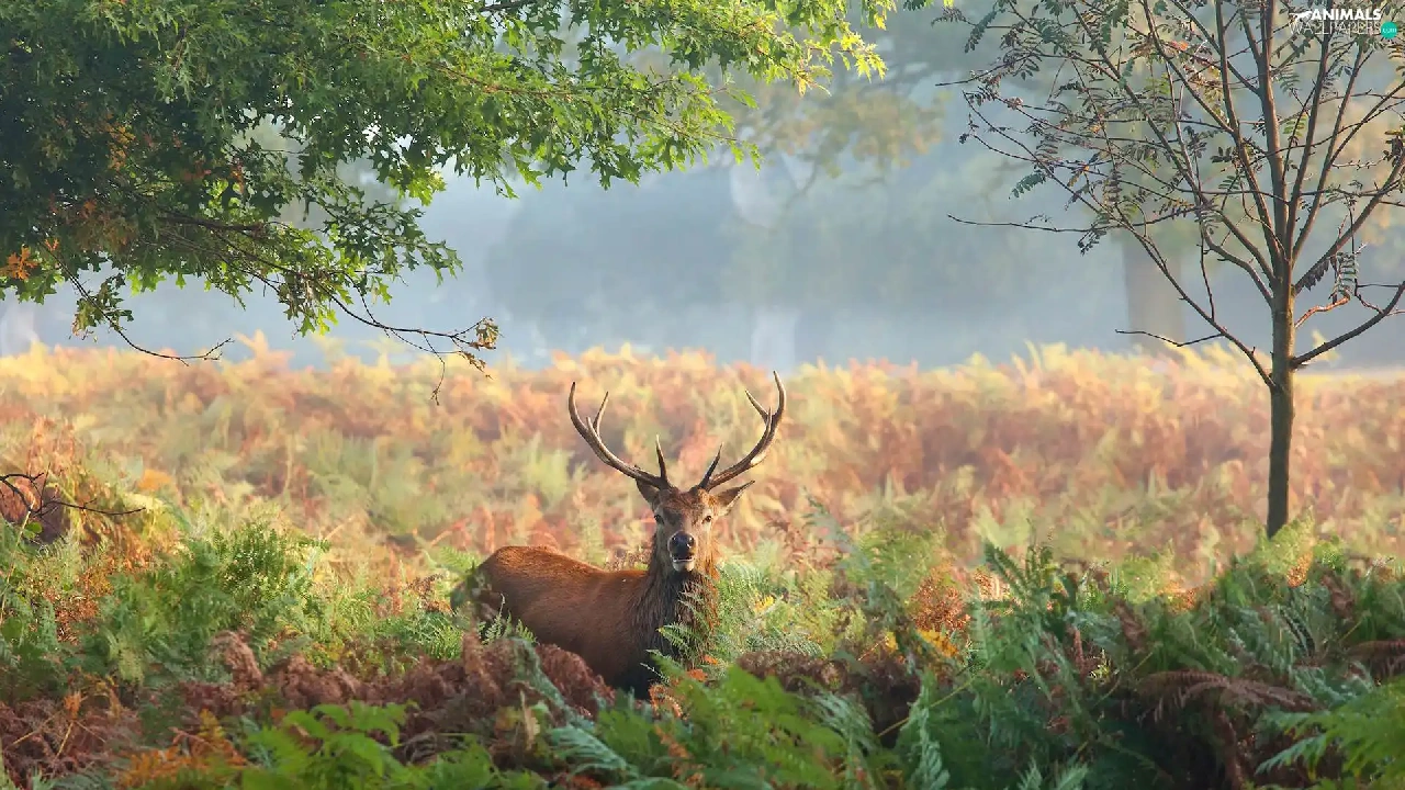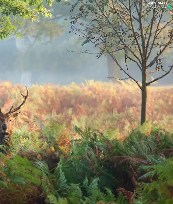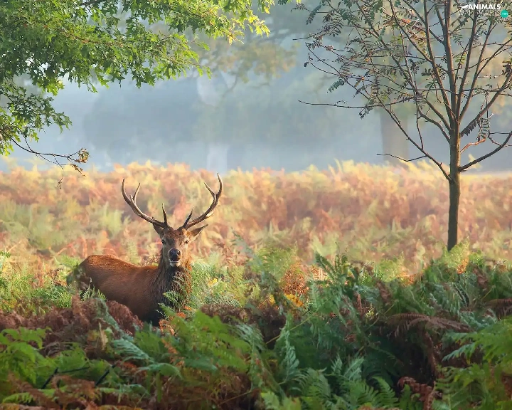 deer, fern, trees, Plants