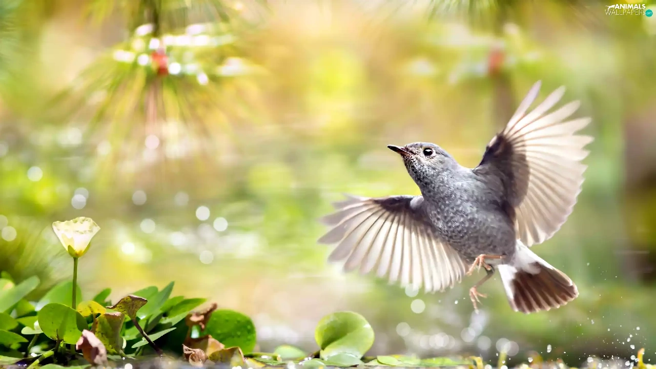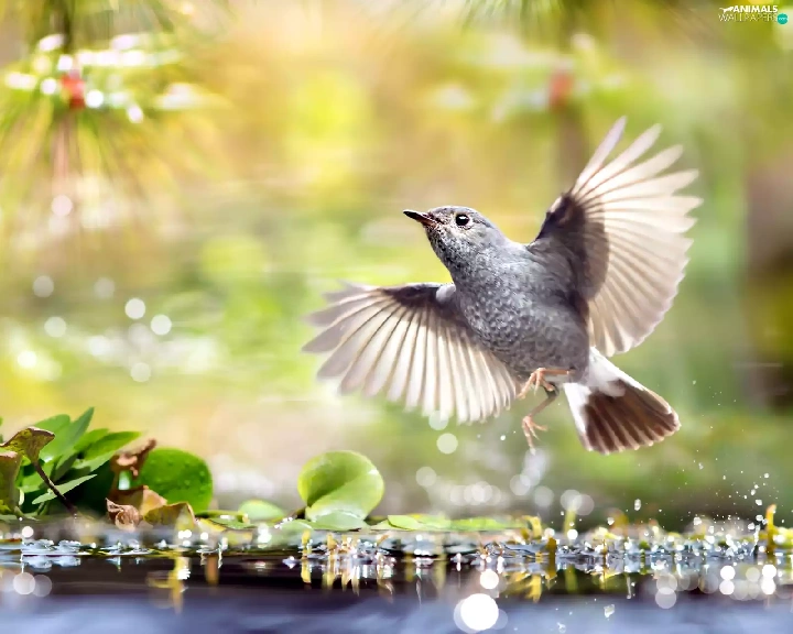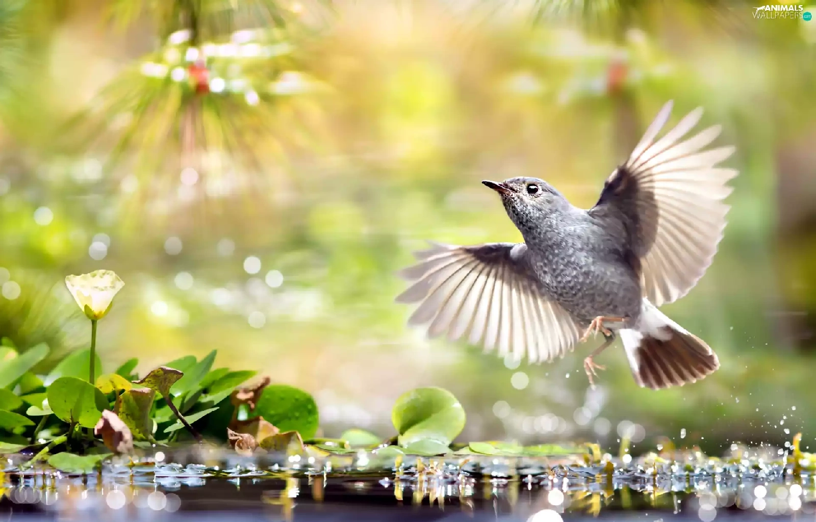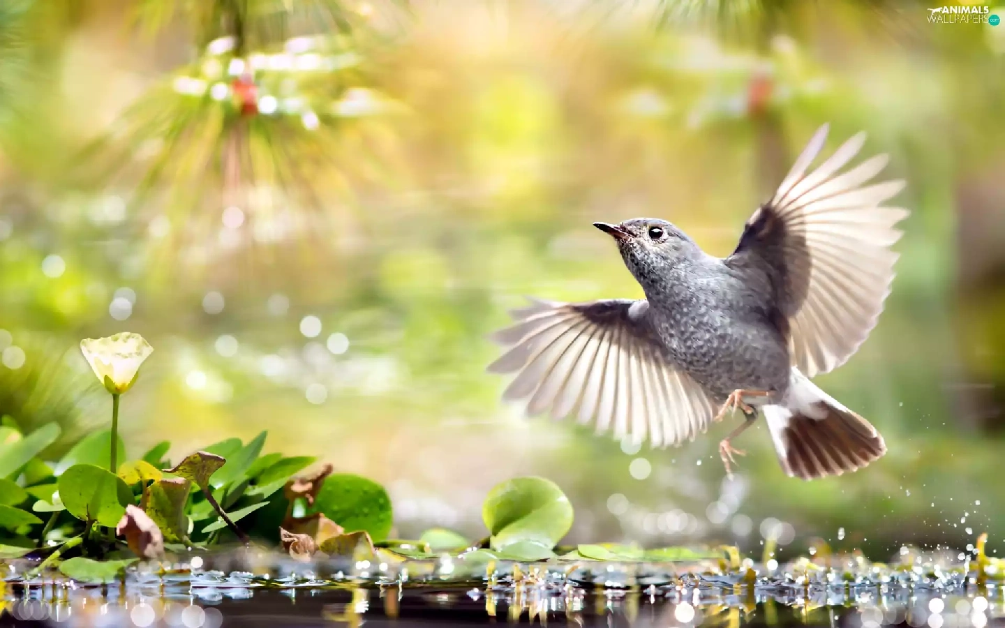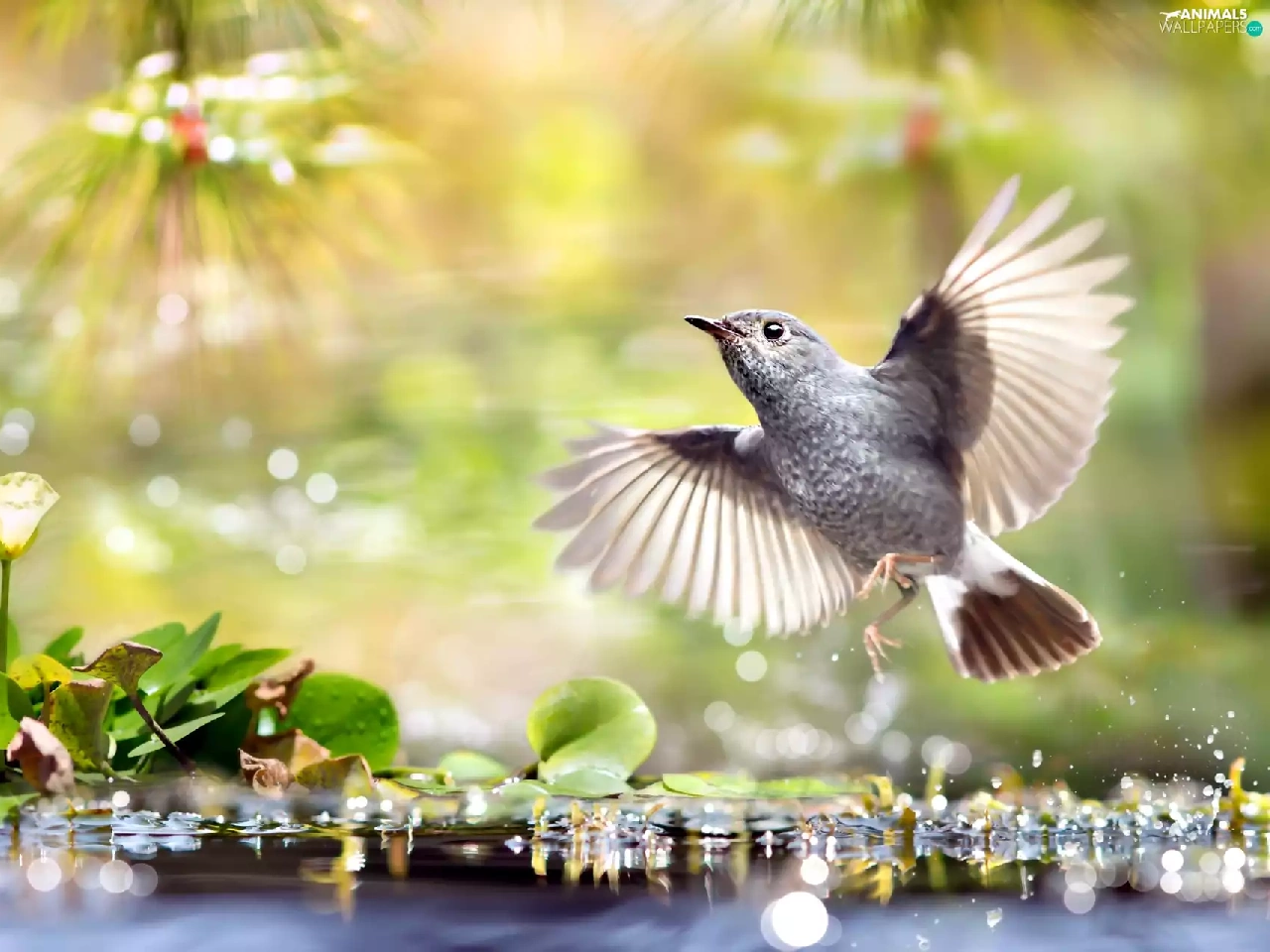 ligh, water, flash, Plants, Bird, sun, luminosity