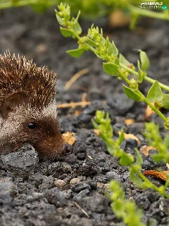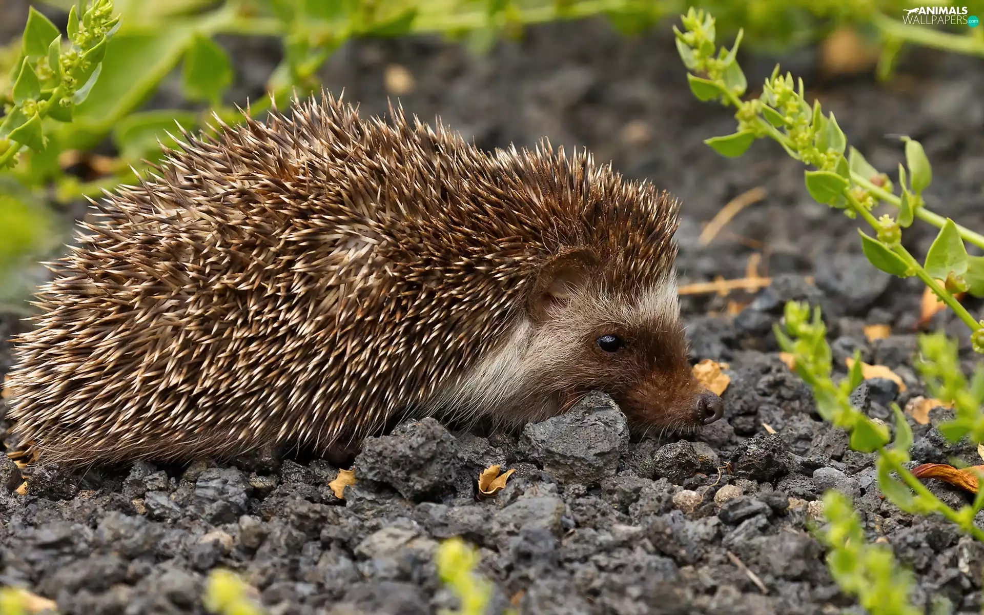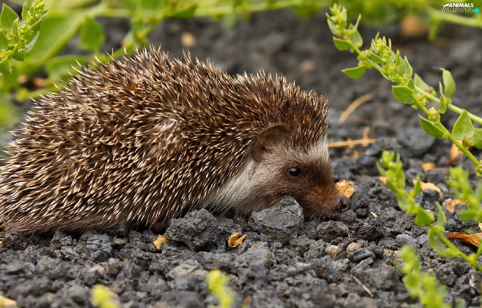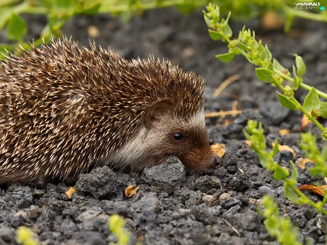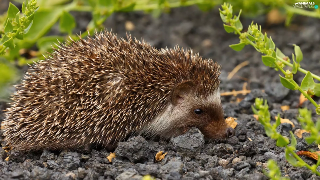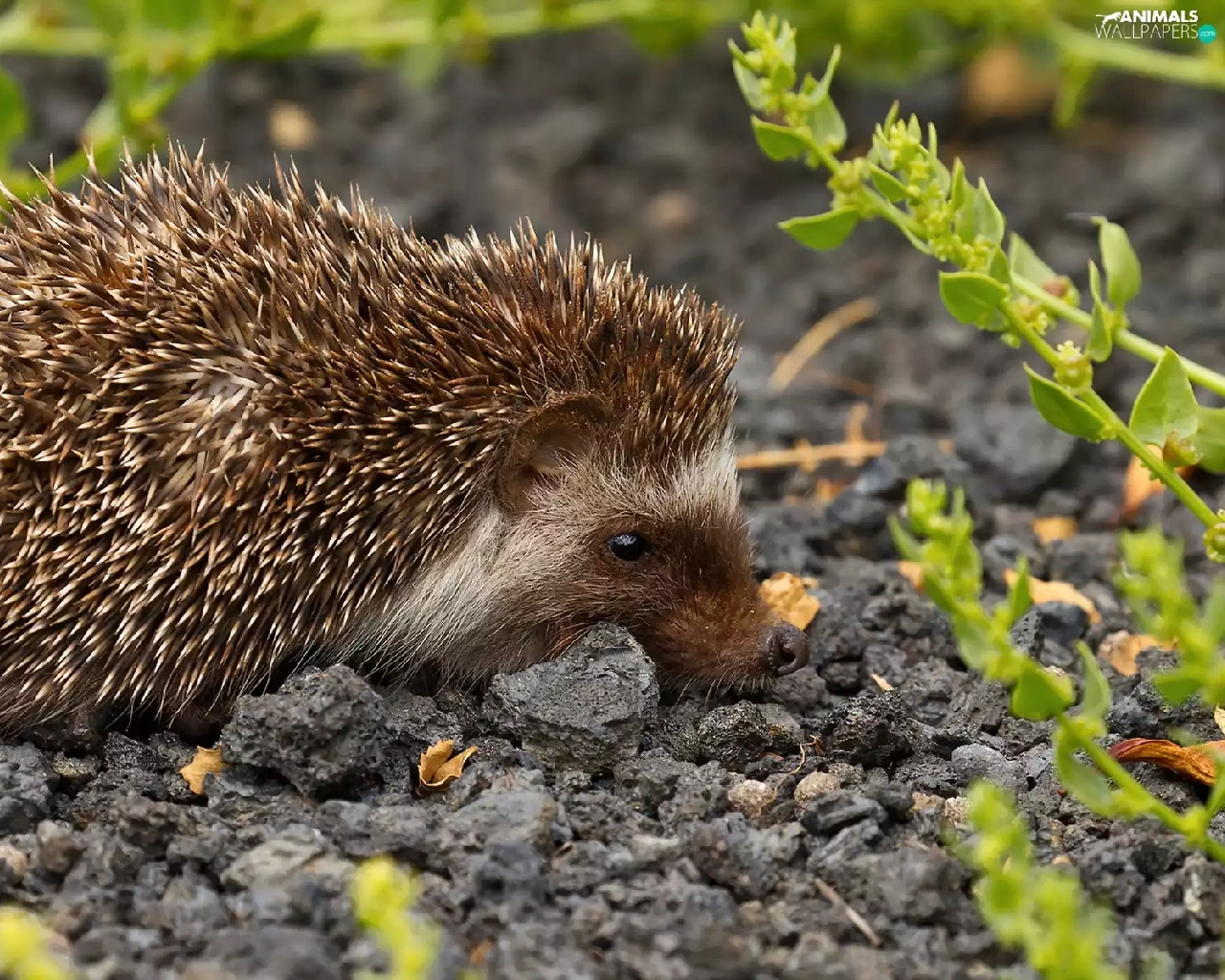 Plants, hedgehog, gravel