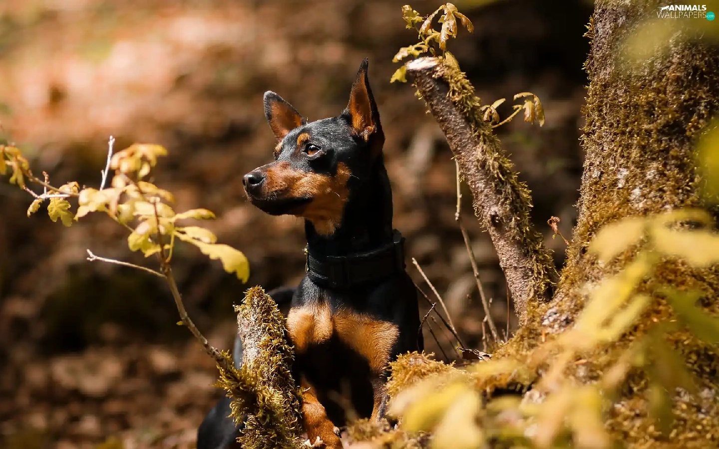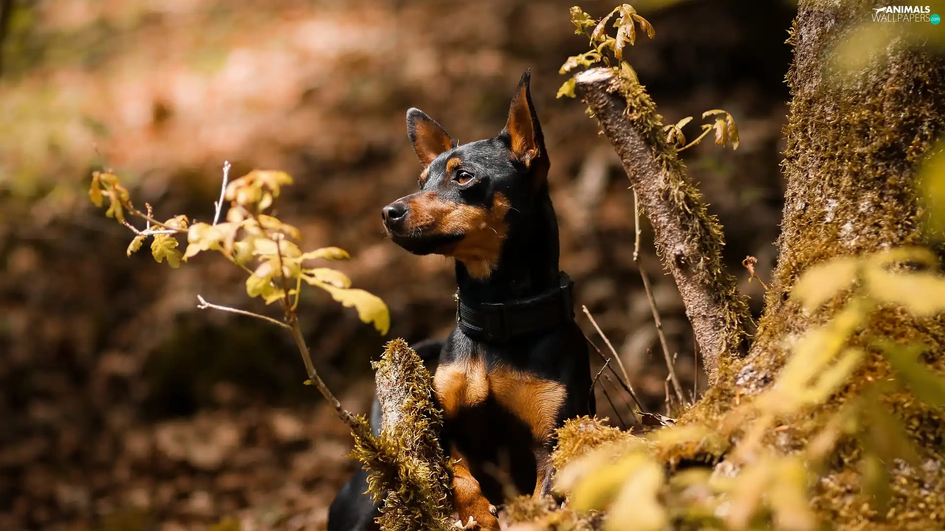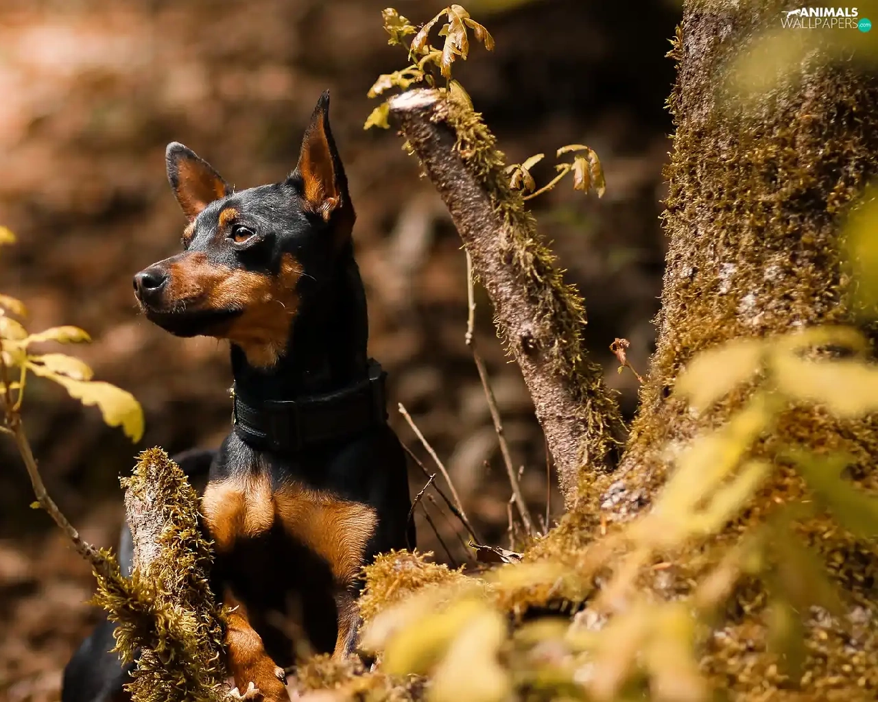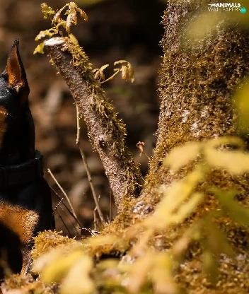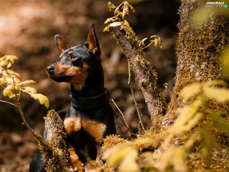 Plants, Leaf, miniature Pinscher, trees, dog