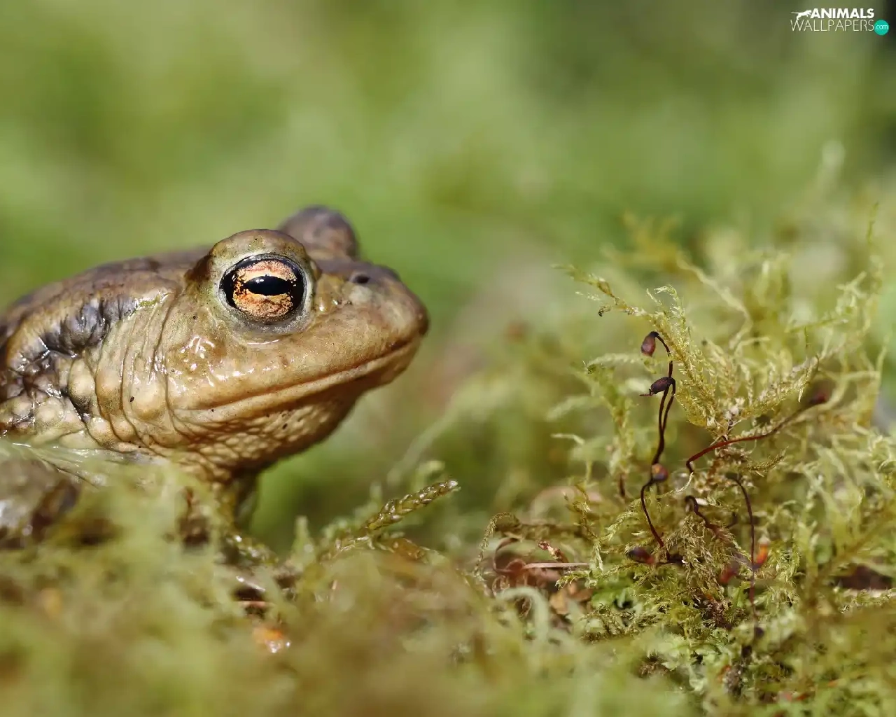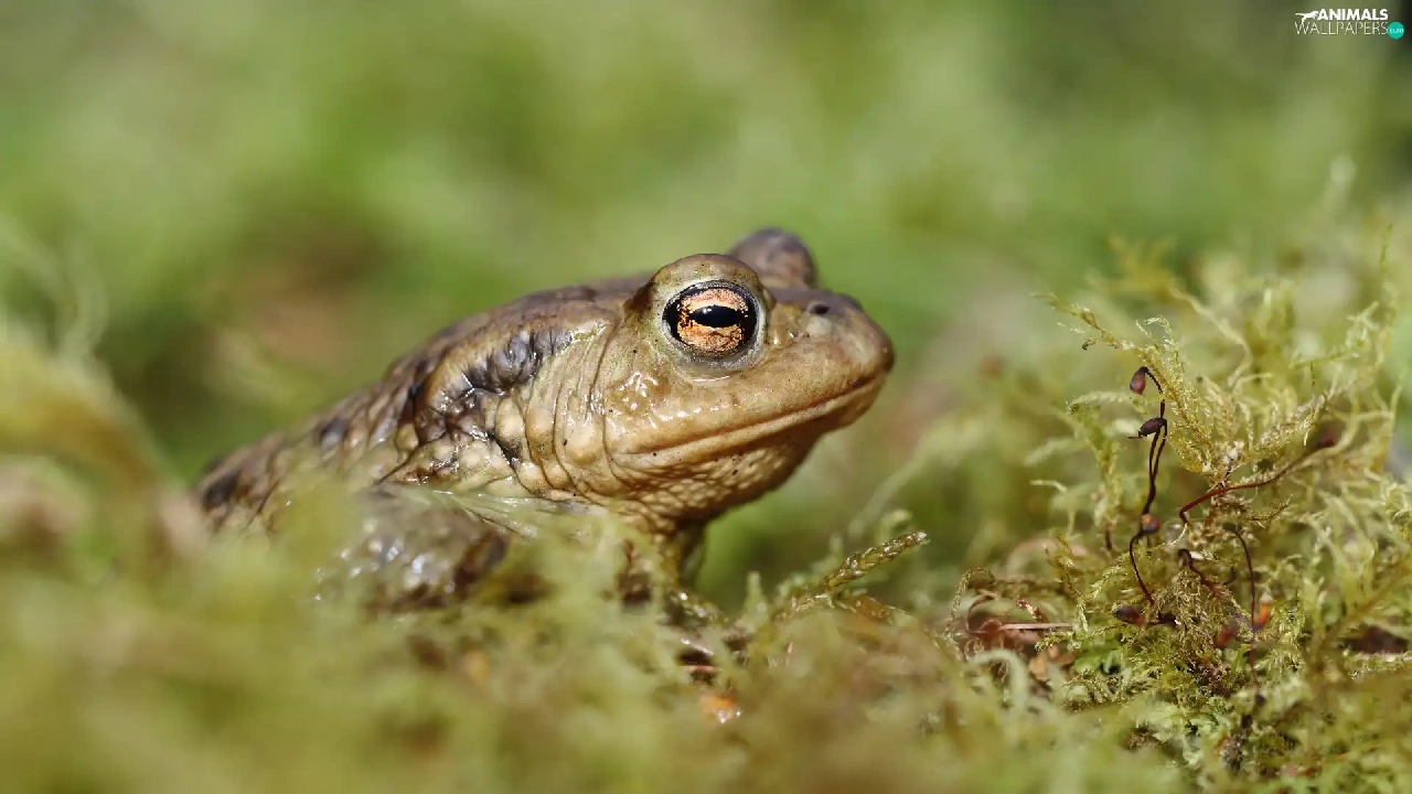 Moss, strange frog, Plants
