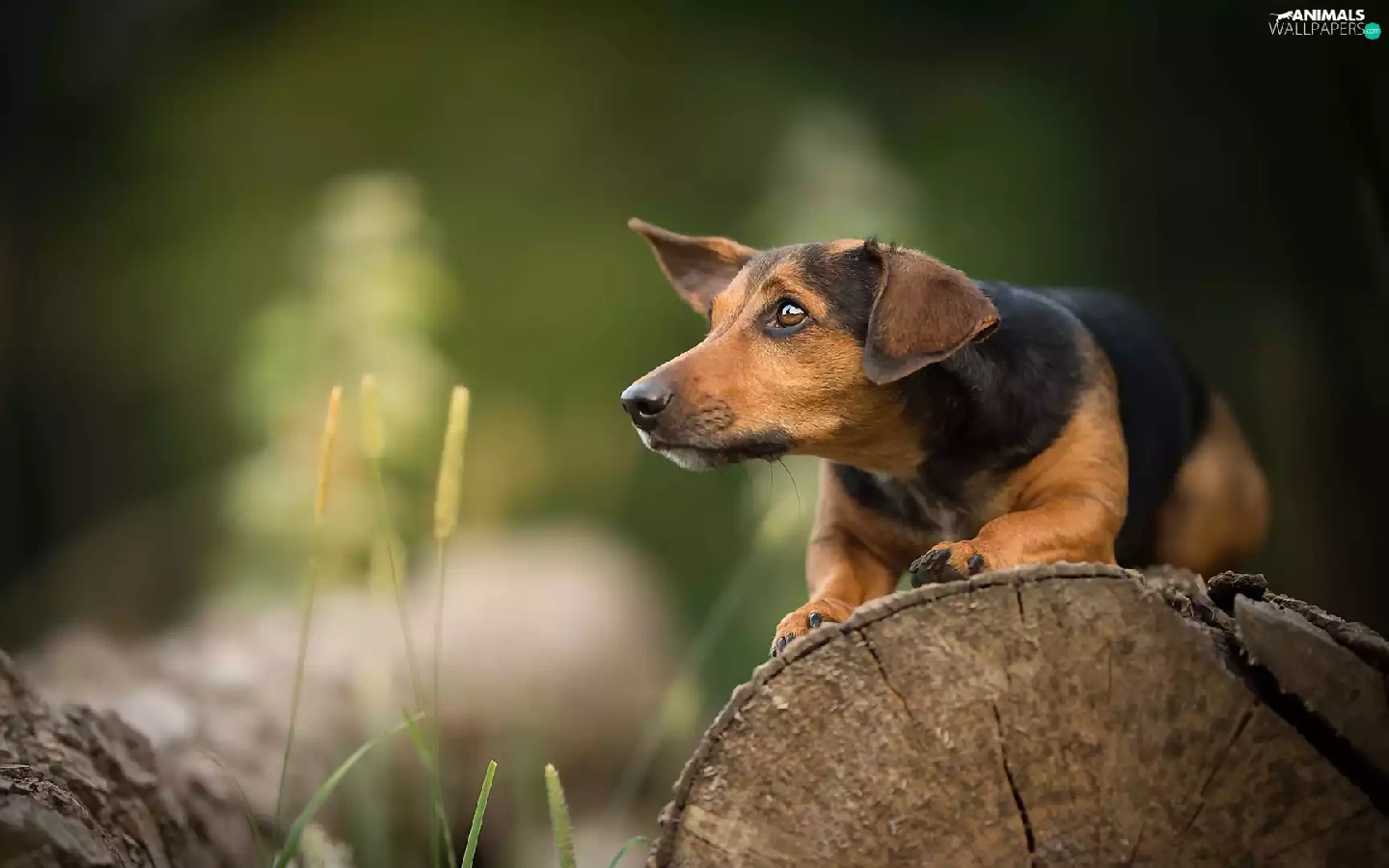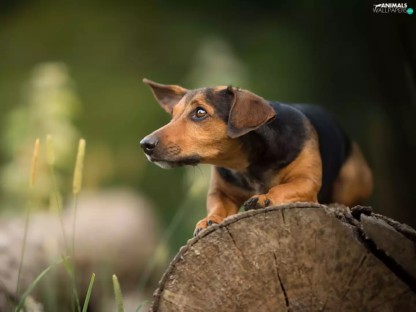 log, plants, muzzle, trees, dog