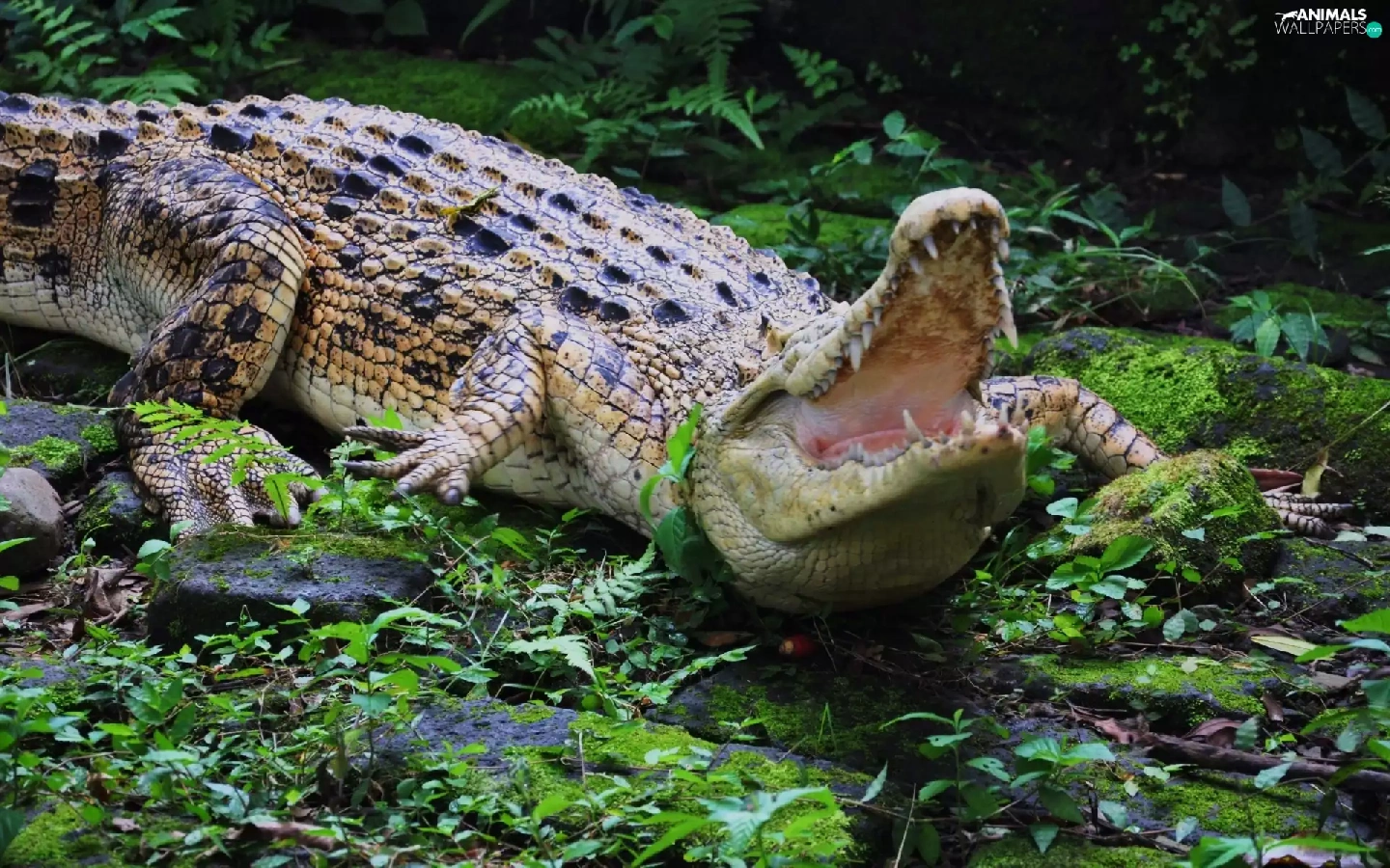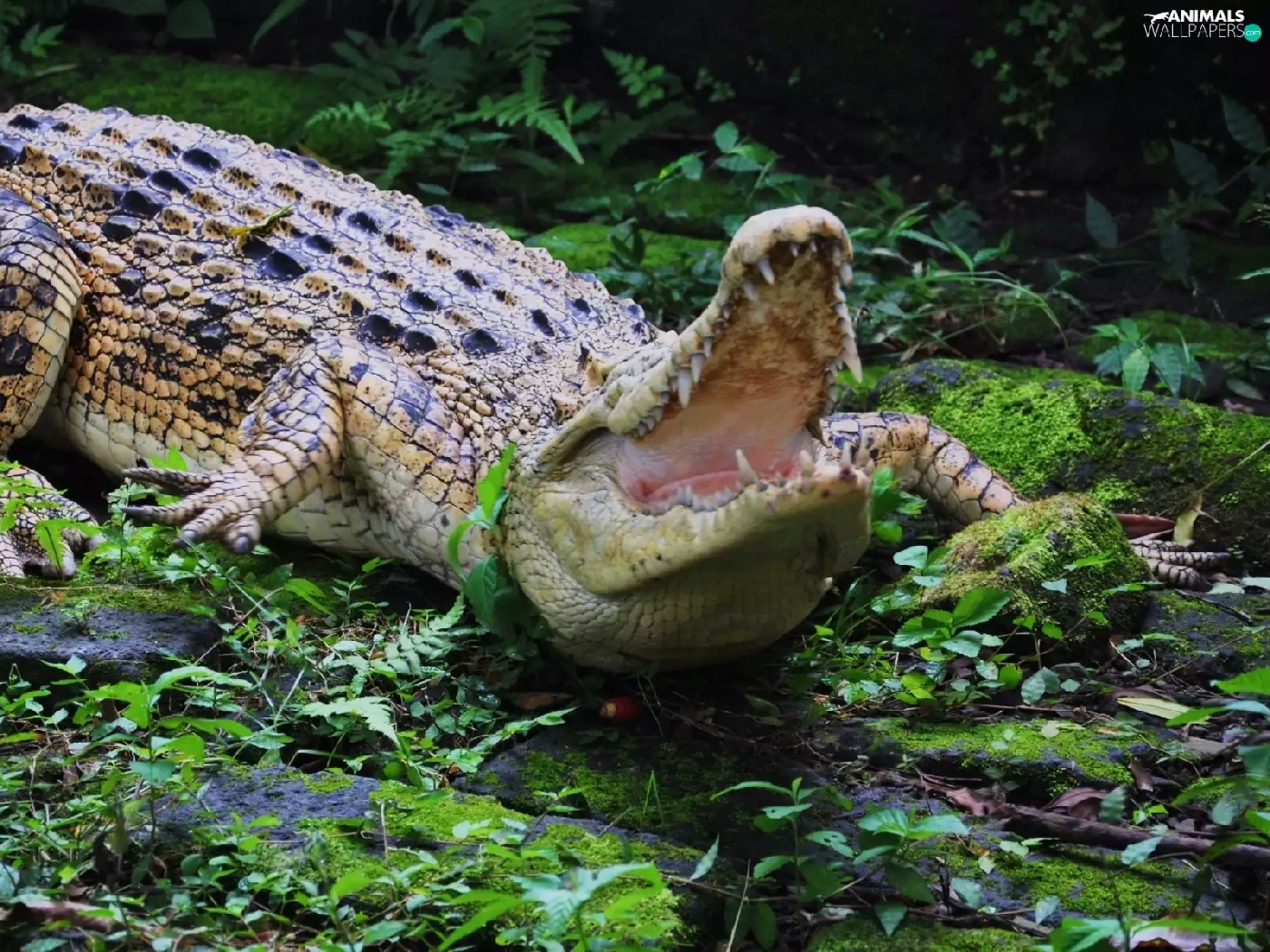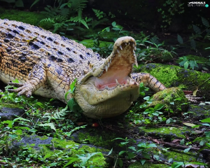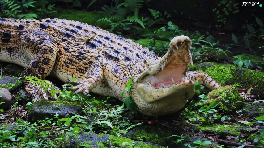 Plants, Crocodile, Stones