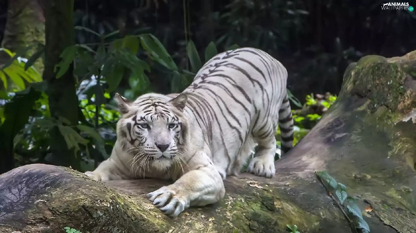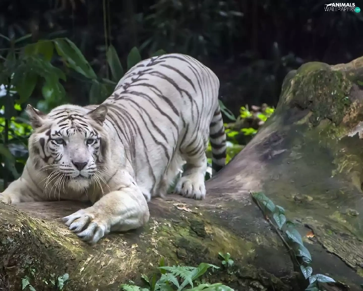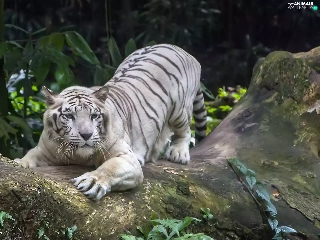 forest, Plants, tiger, rocks, White