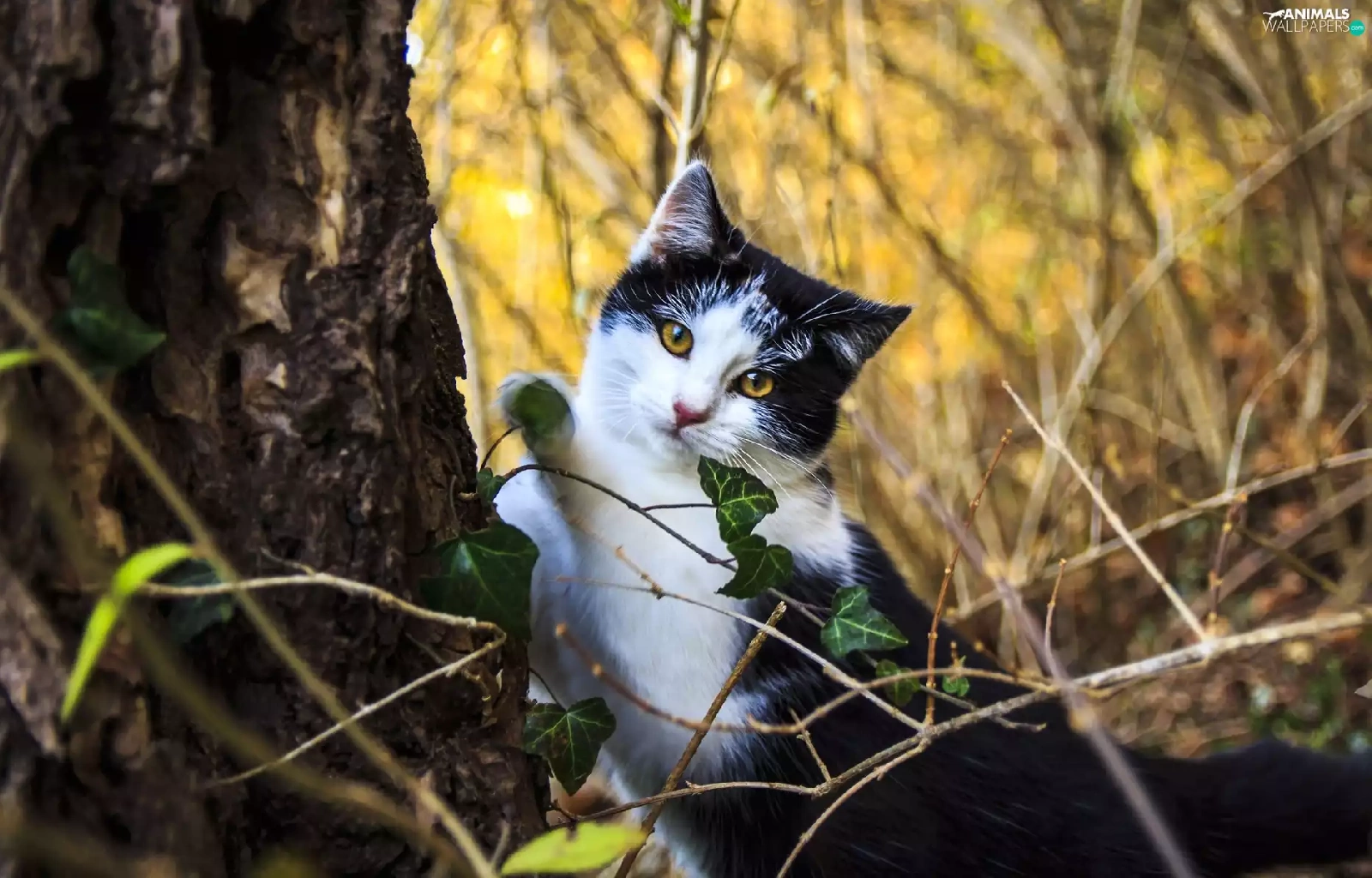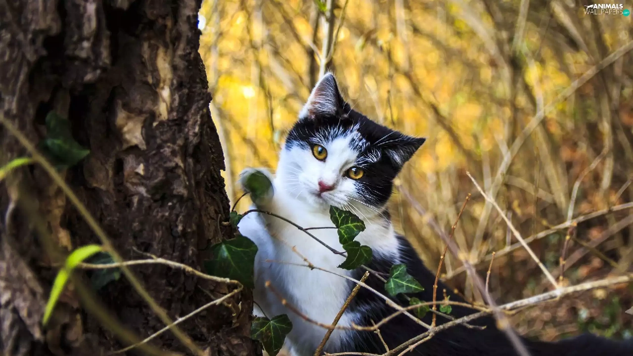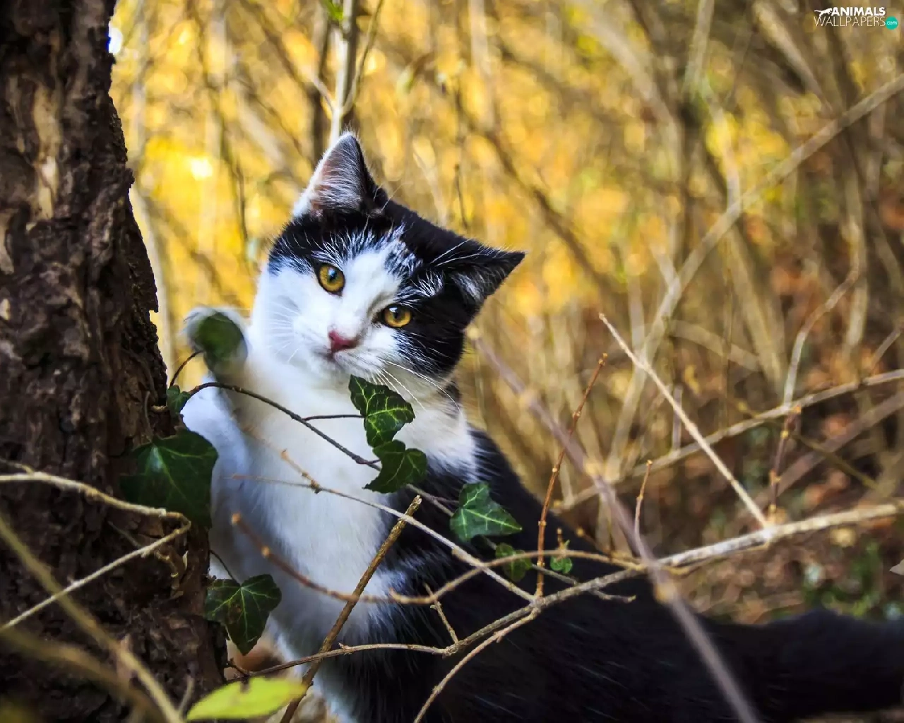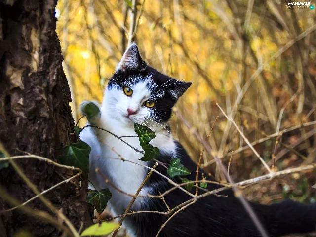 Plants, cat, trunk