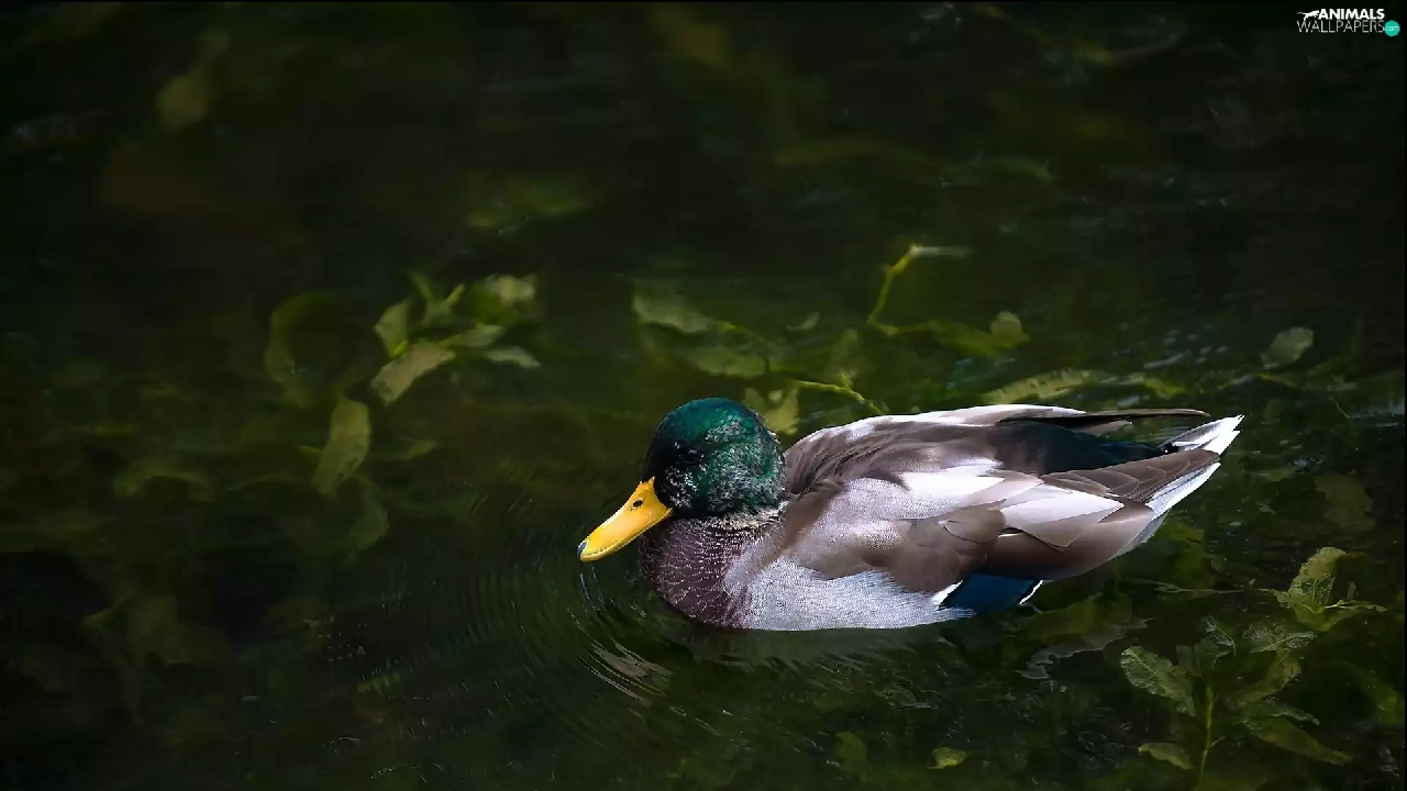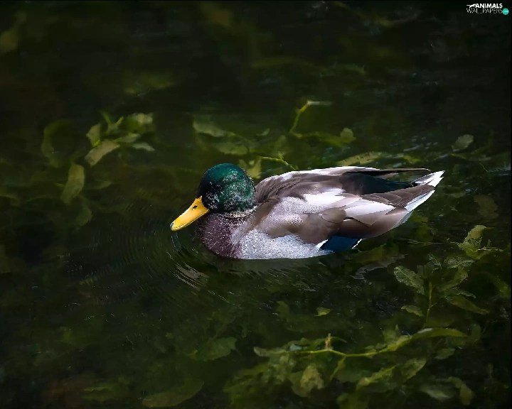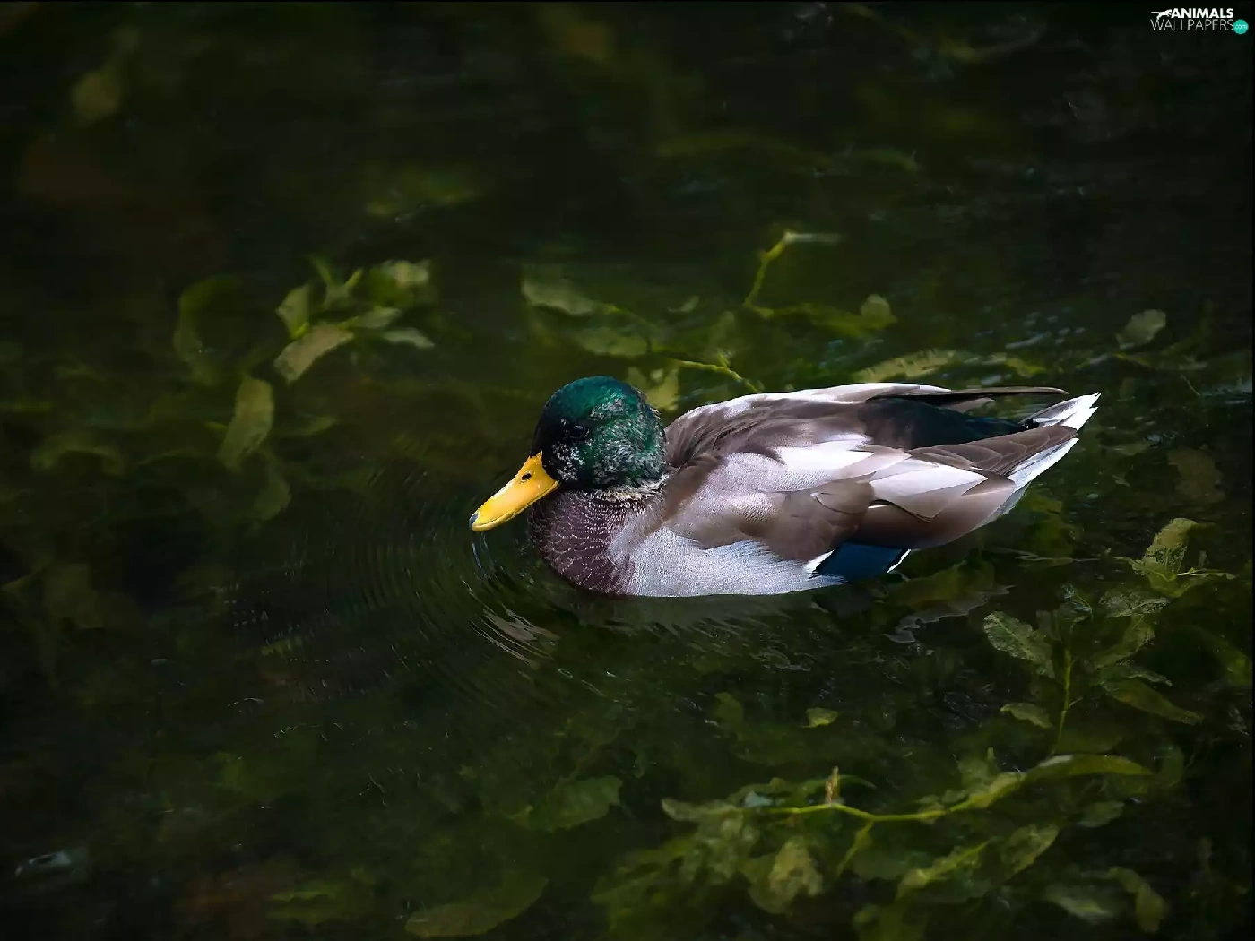 duck, Plants, water, Pond - car