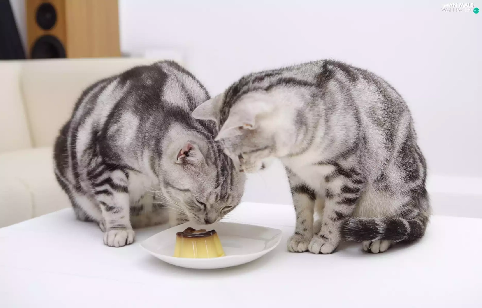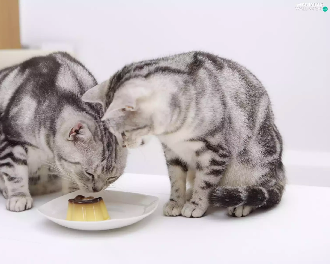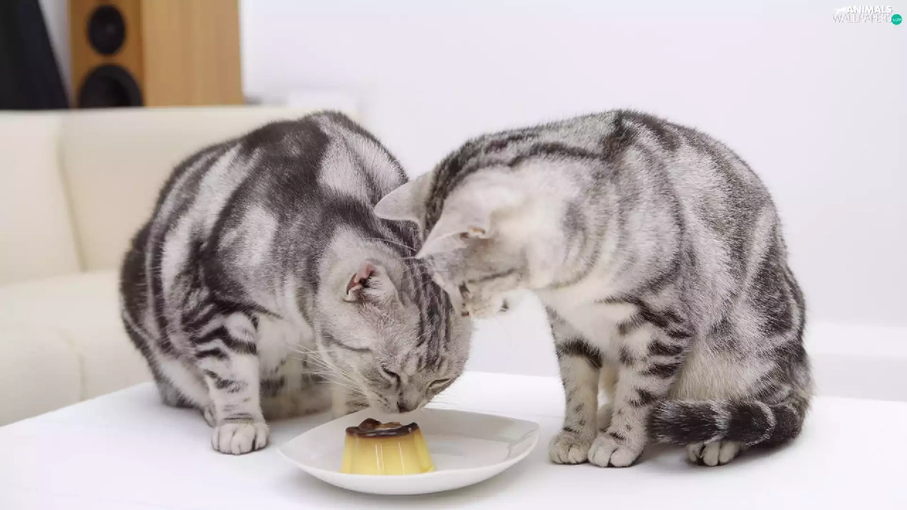 plate, cats, pudding