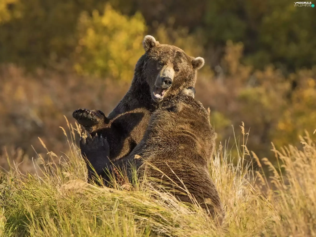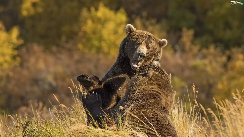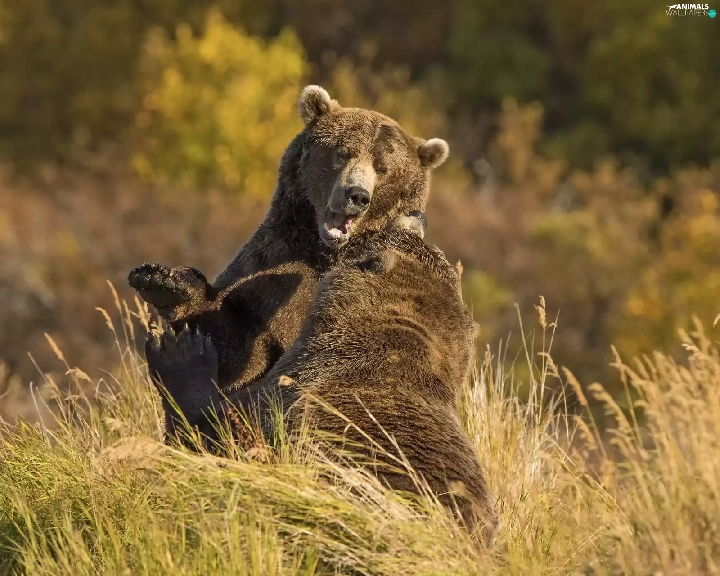 play, bears, brown