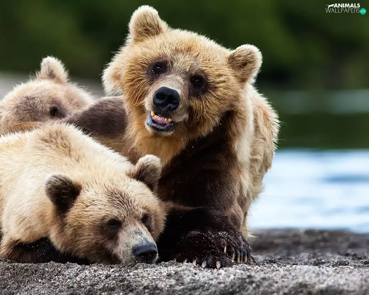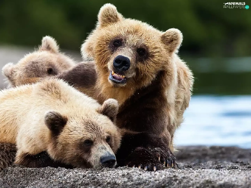 play, bears, young