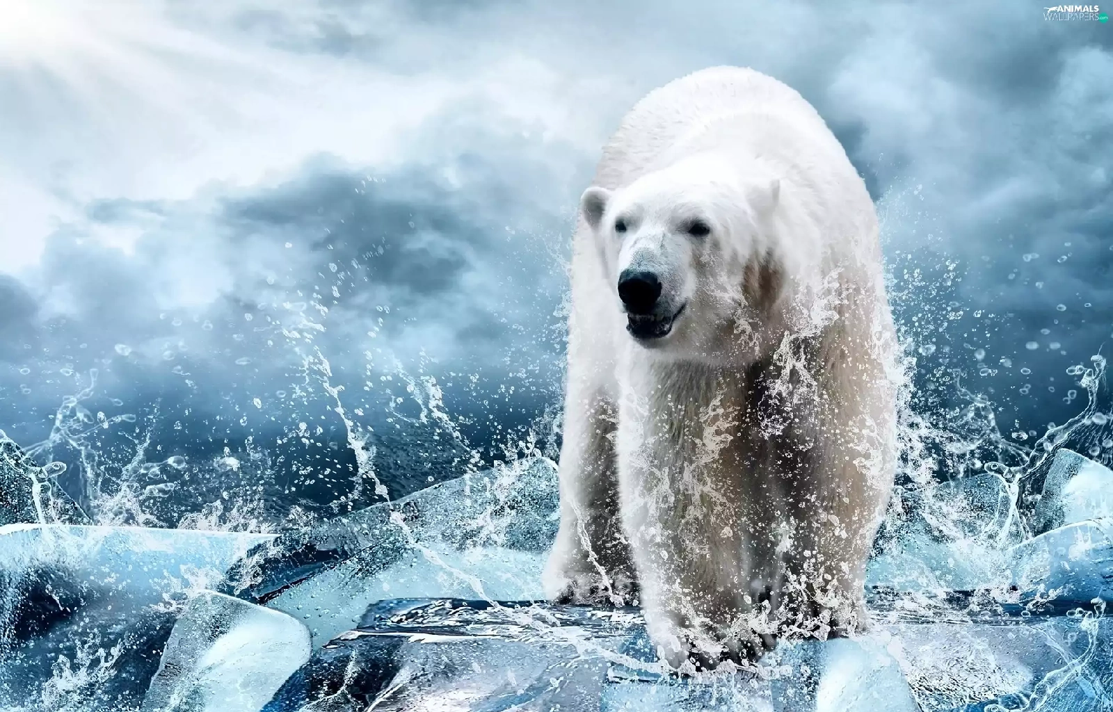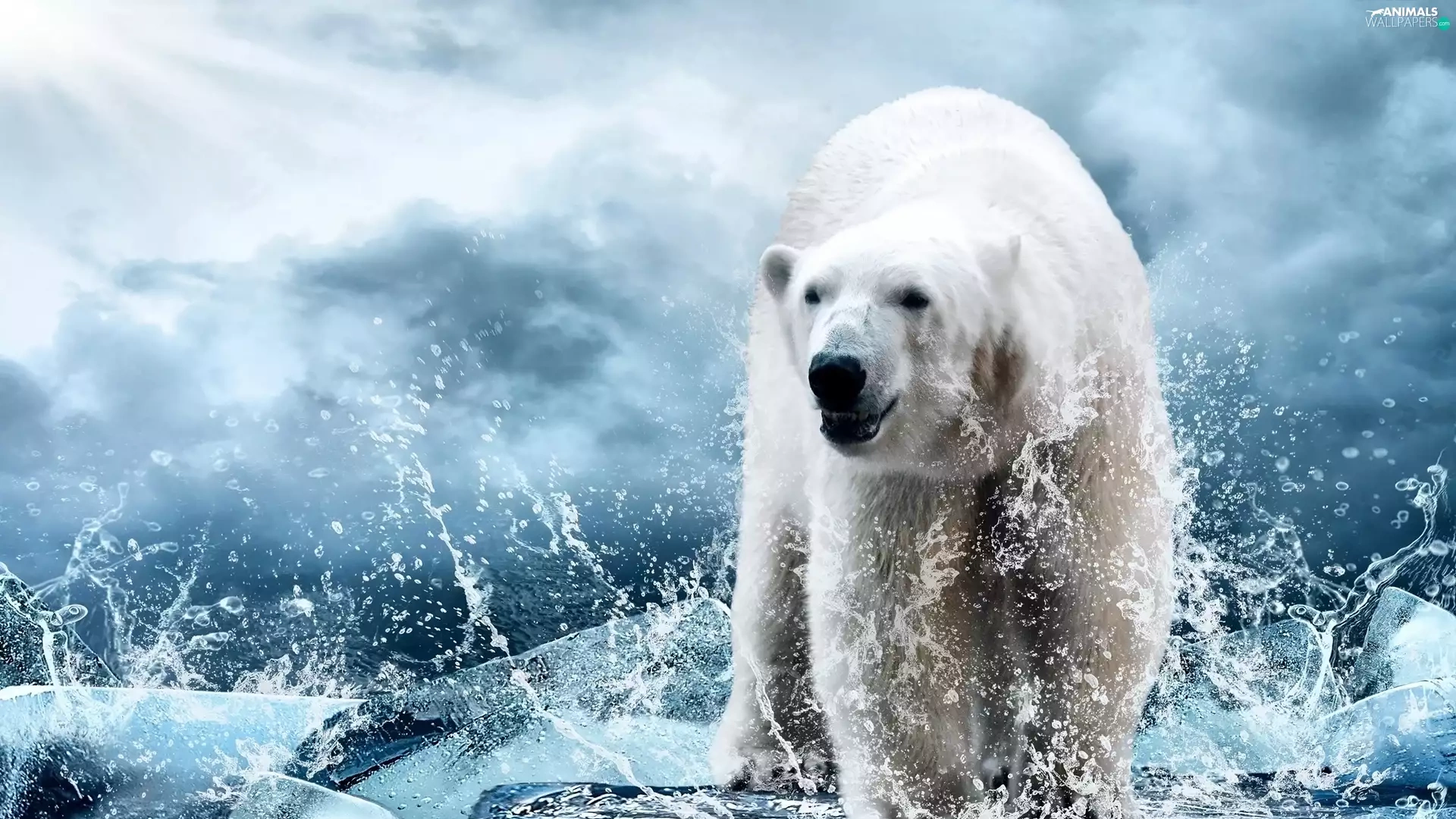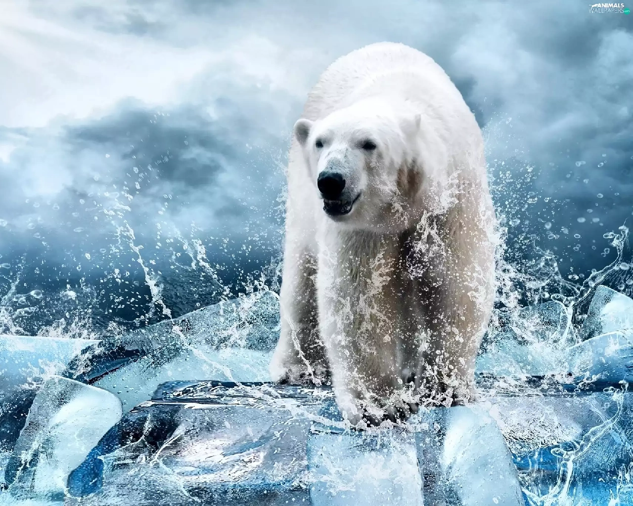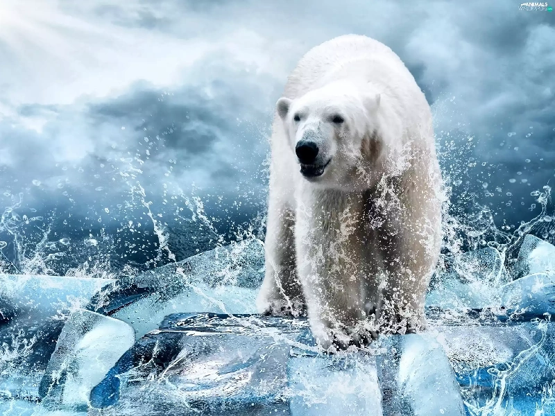 Bear, Splashing, water, polar