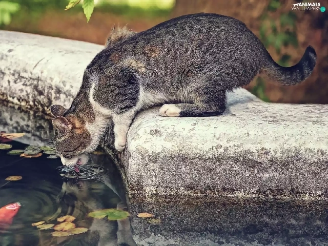 cat, fish, Park, pond