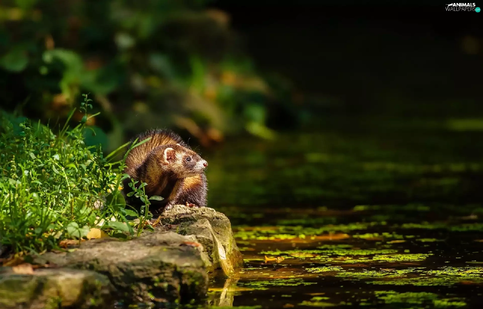Stones, grass, lake, Pond - car, ferret
