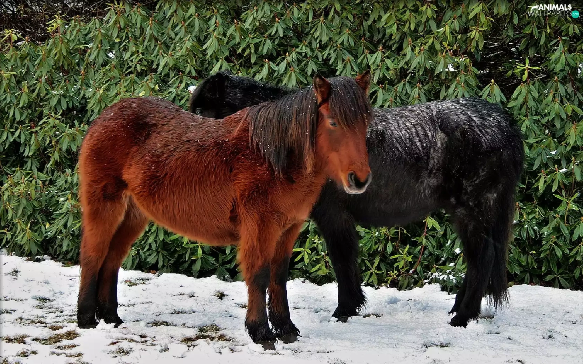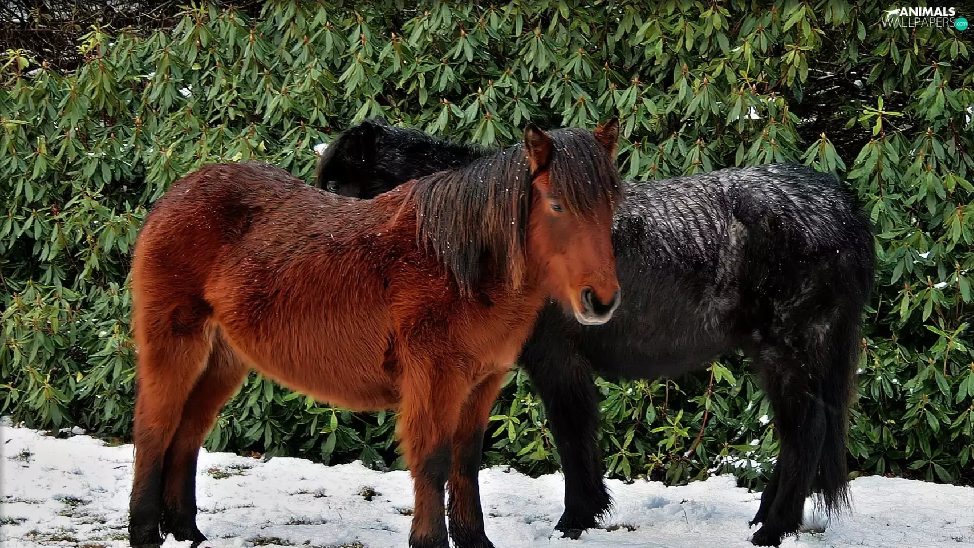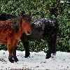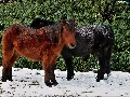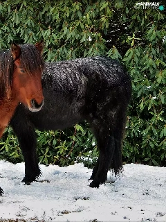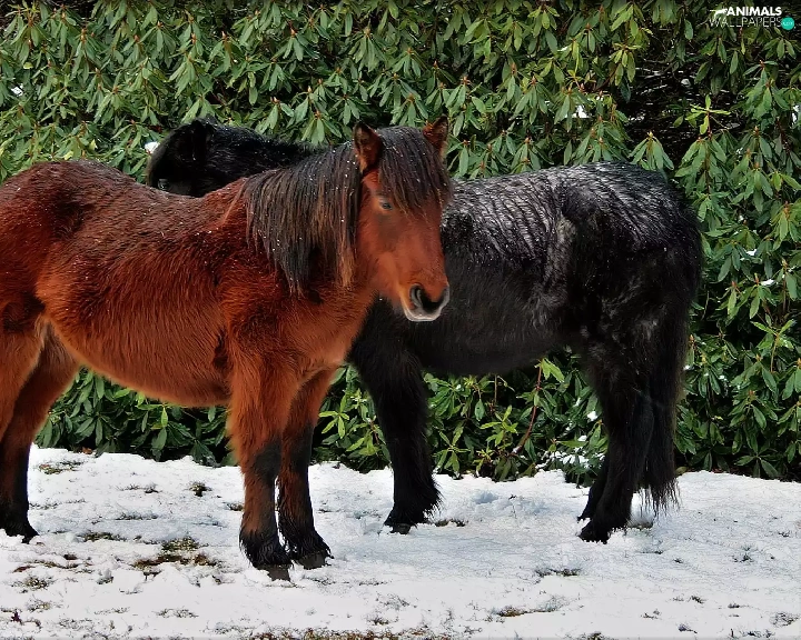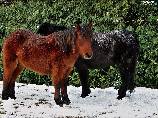 snow, Two cars, ponies
