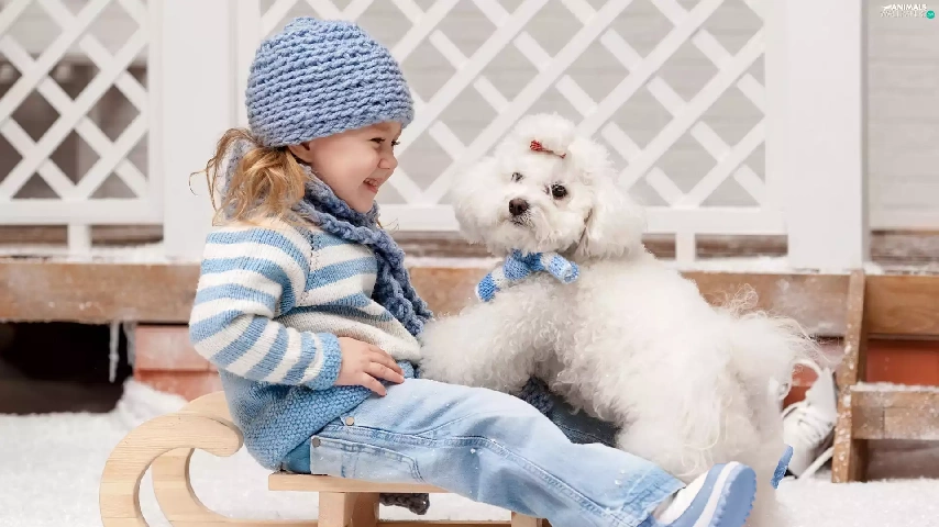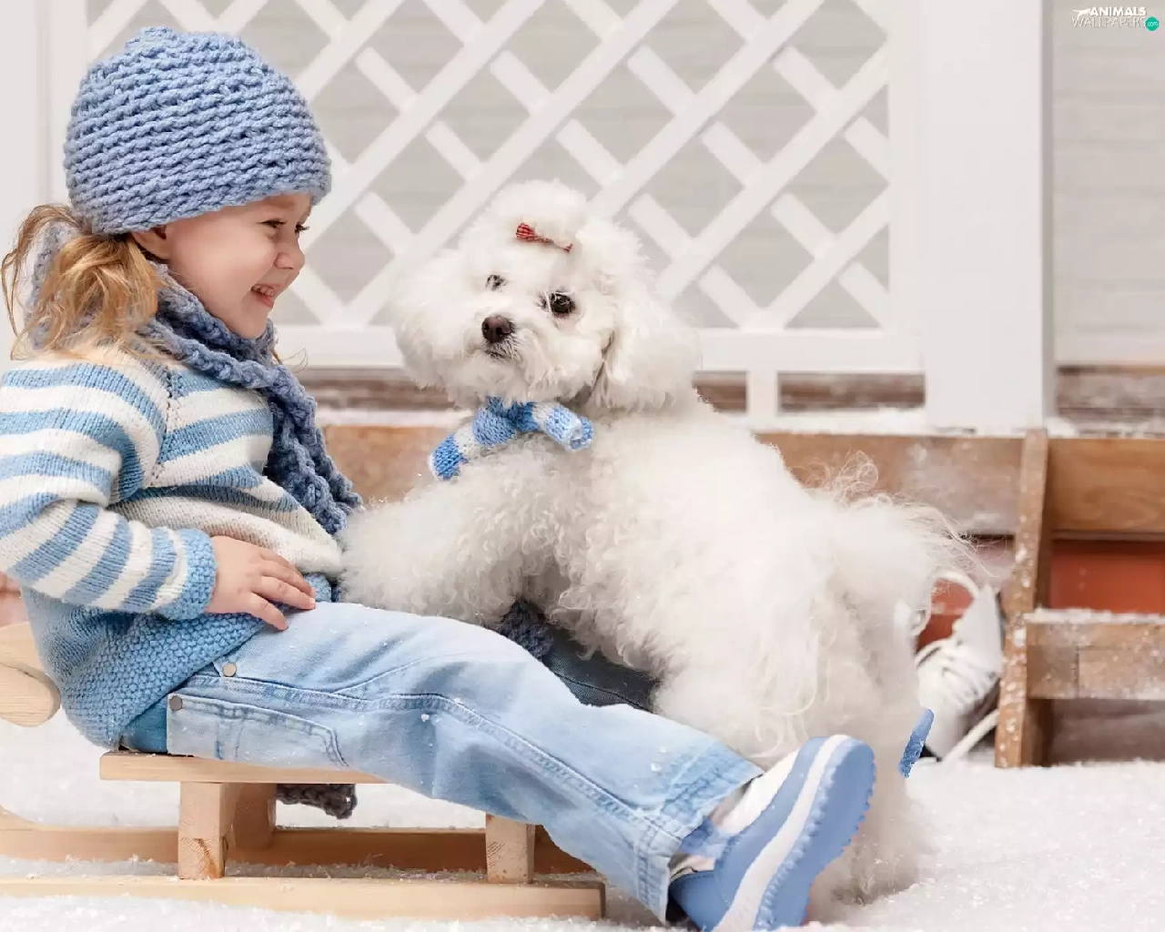 sledge, girl, Miniature Poodle