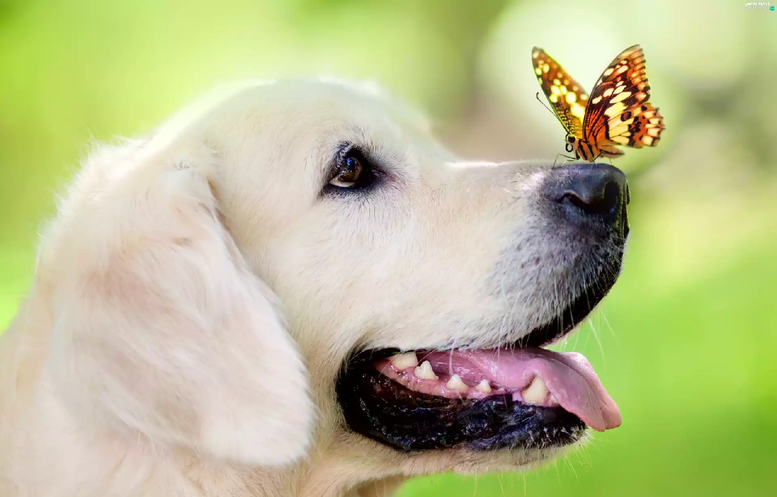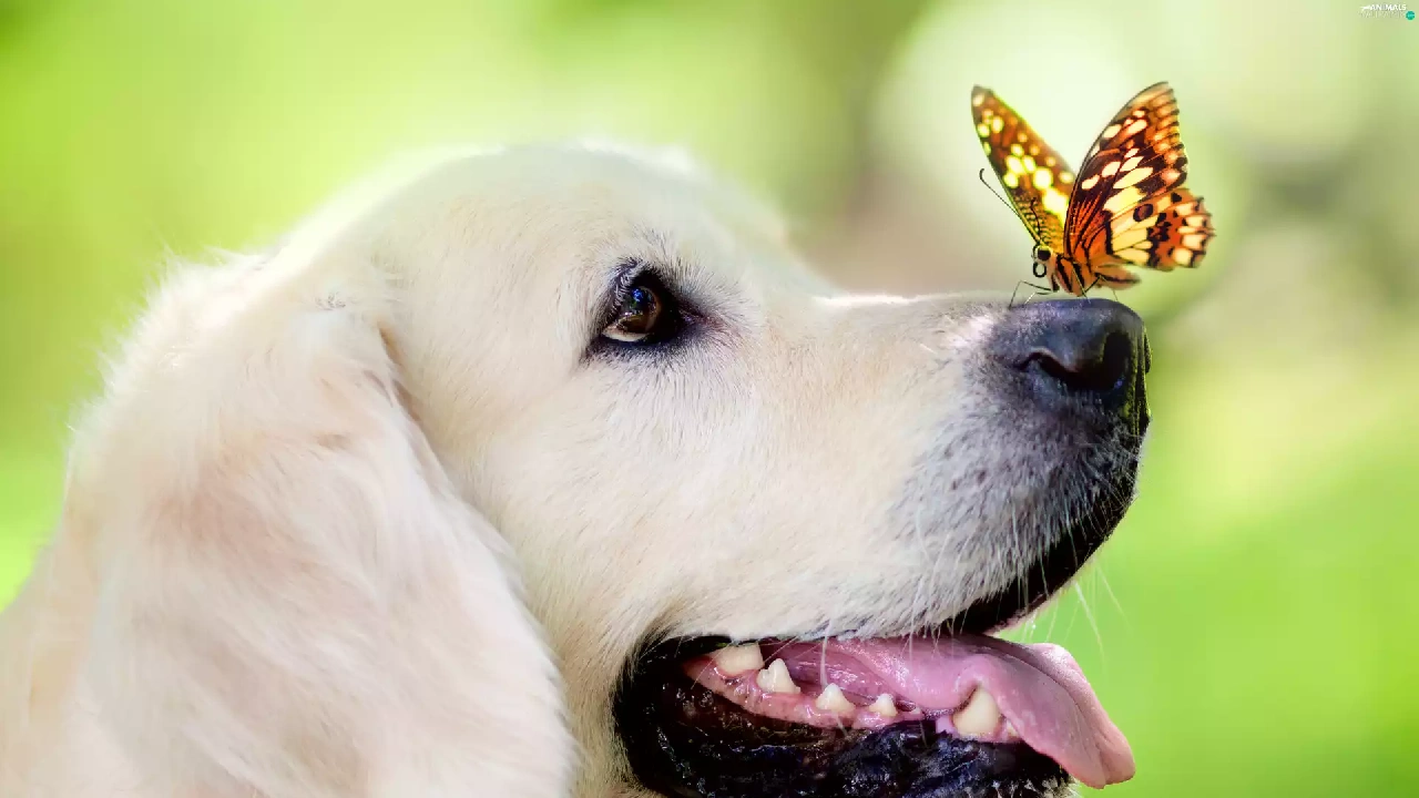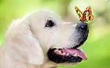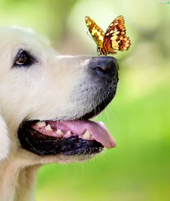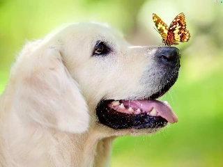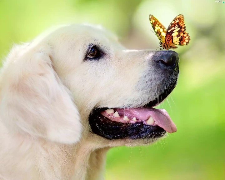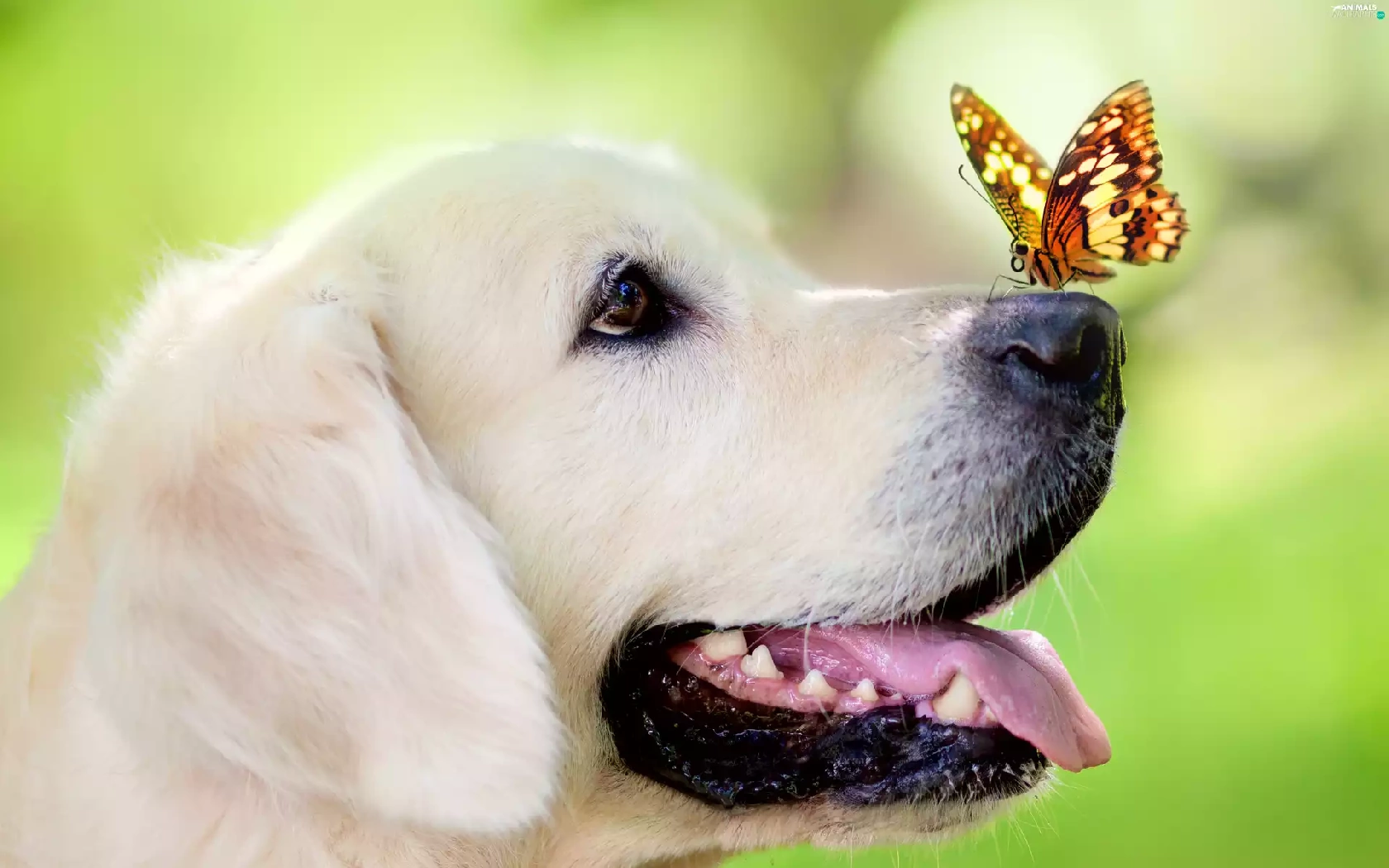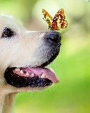portrait, dog, butterfly