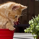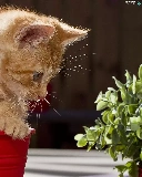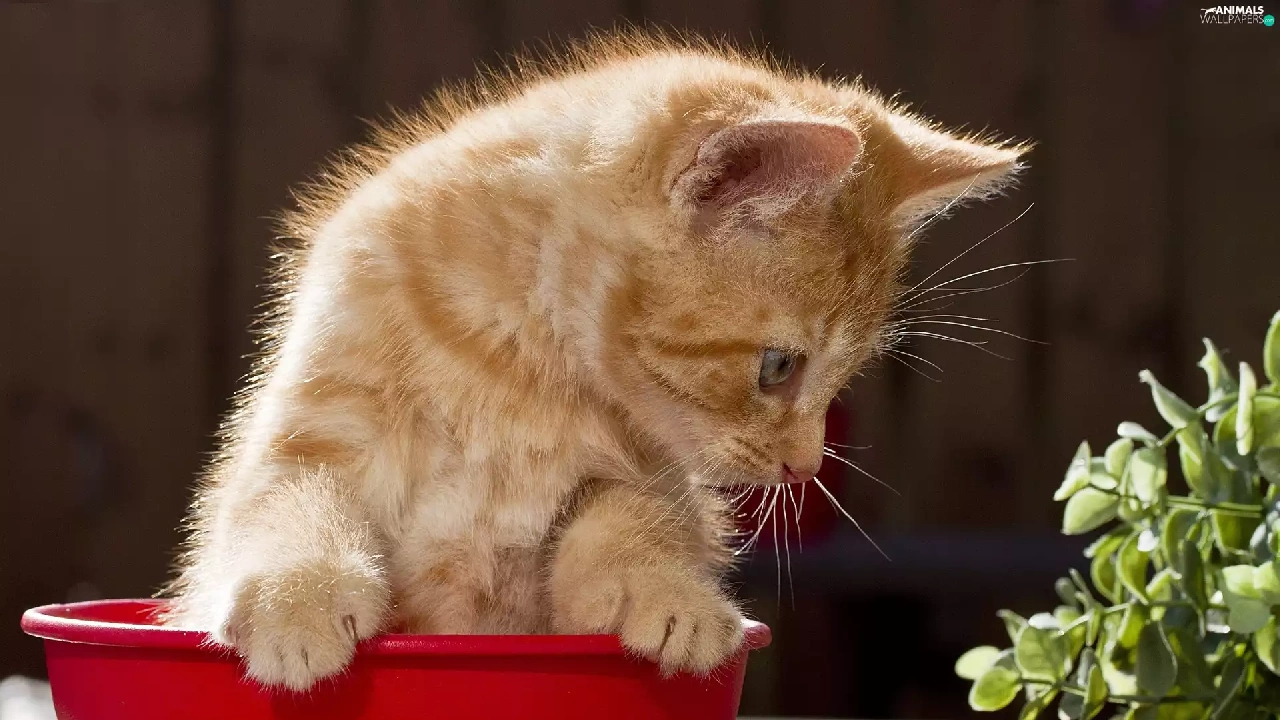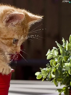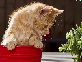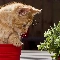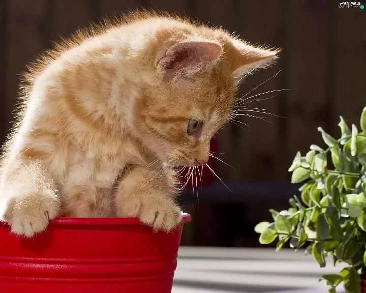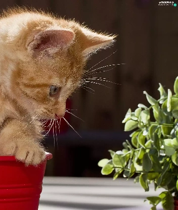 cat, pot, Flower, red hot