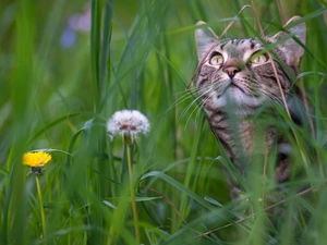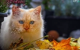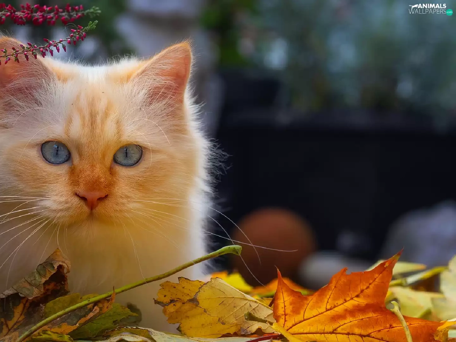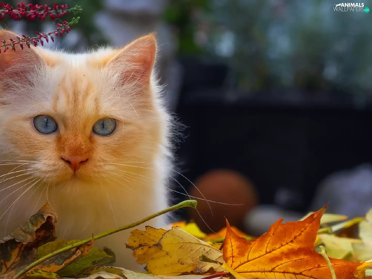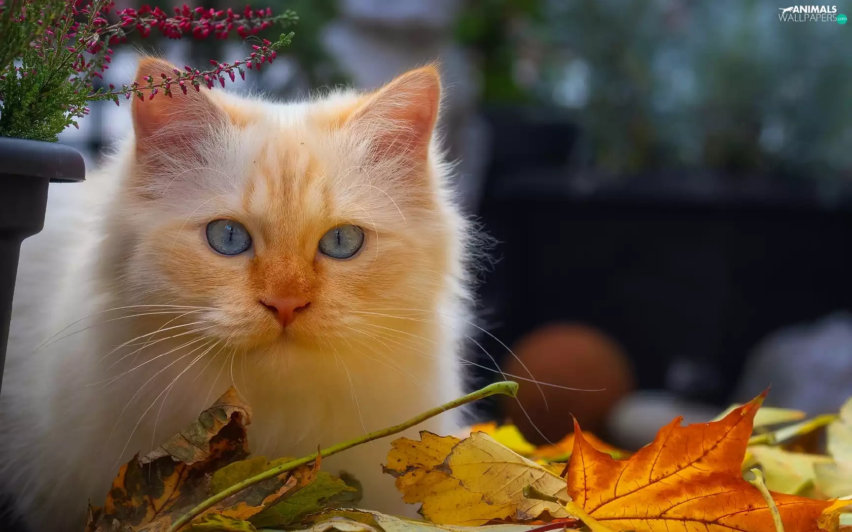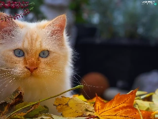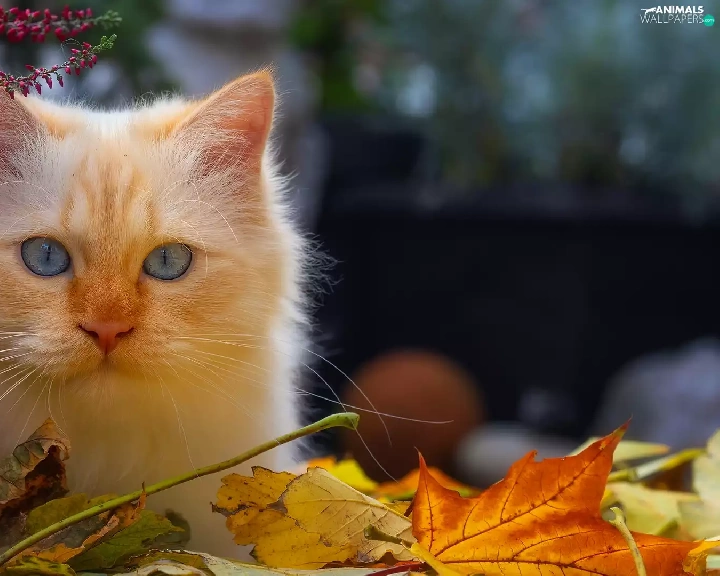 cat, Reddish, heather, pot, Leaf, Blue Eyed