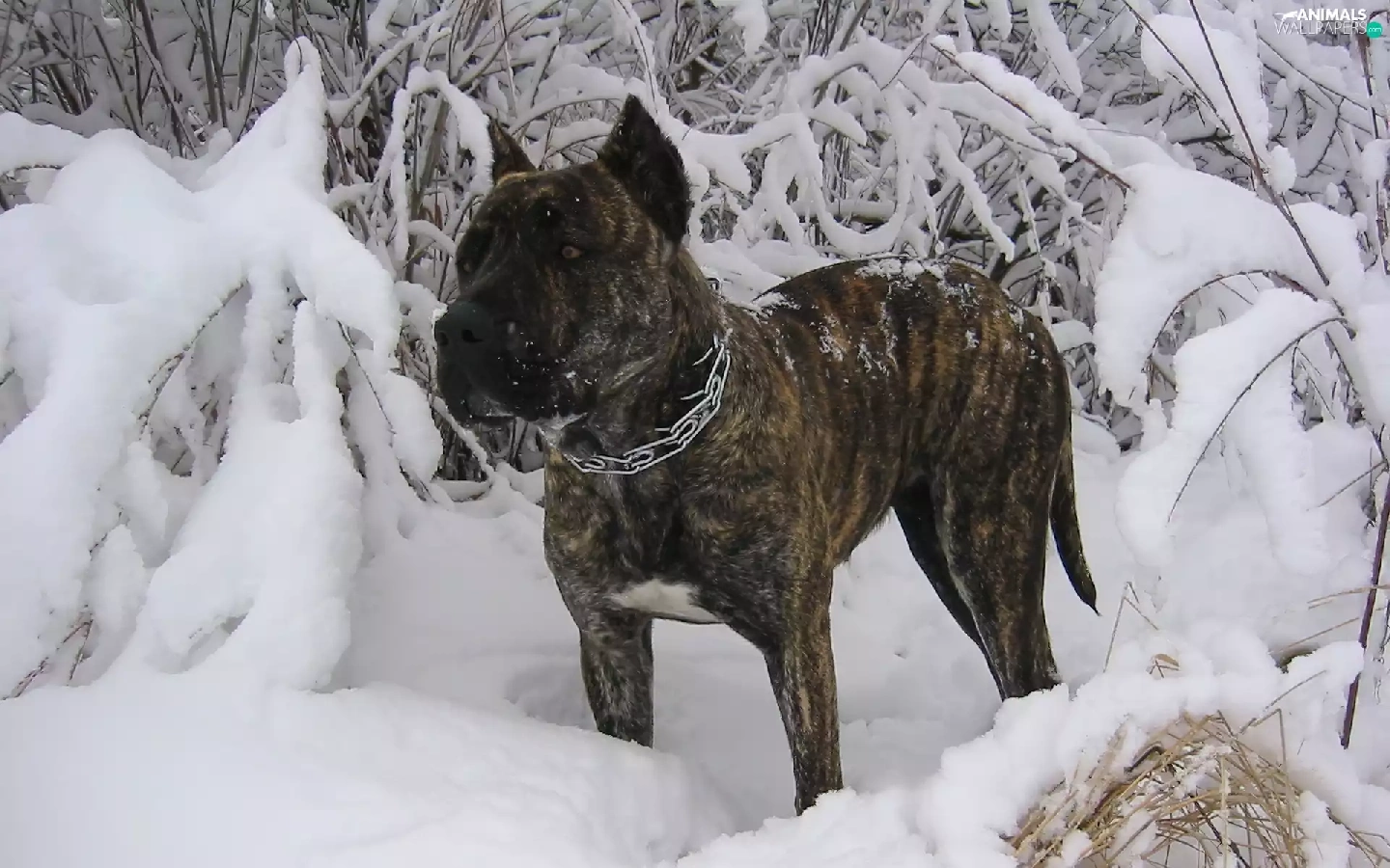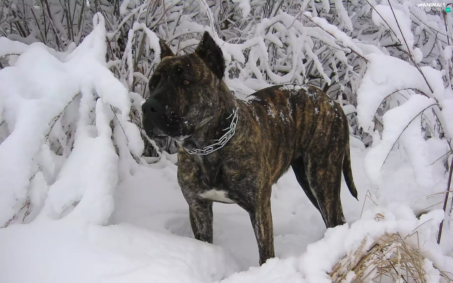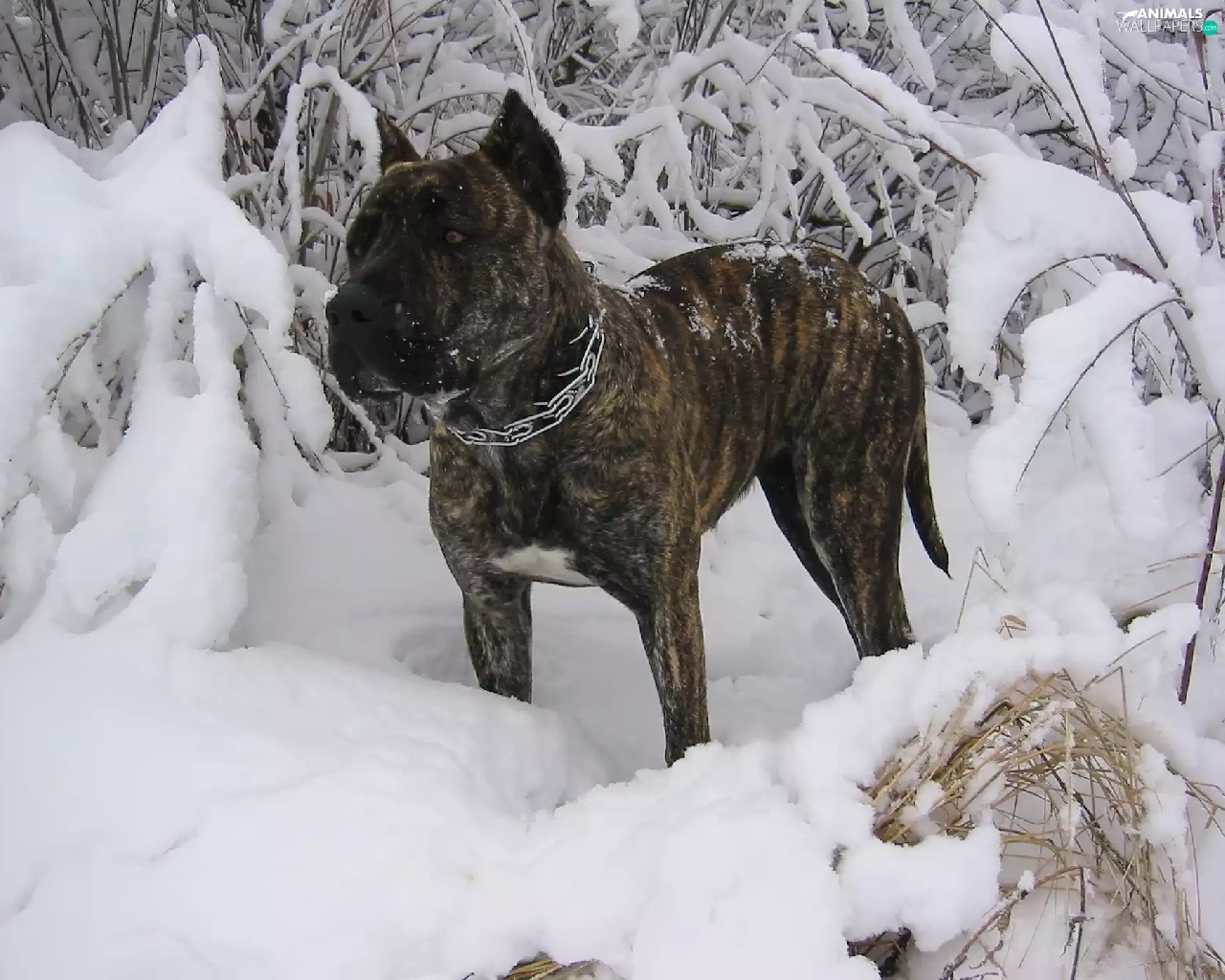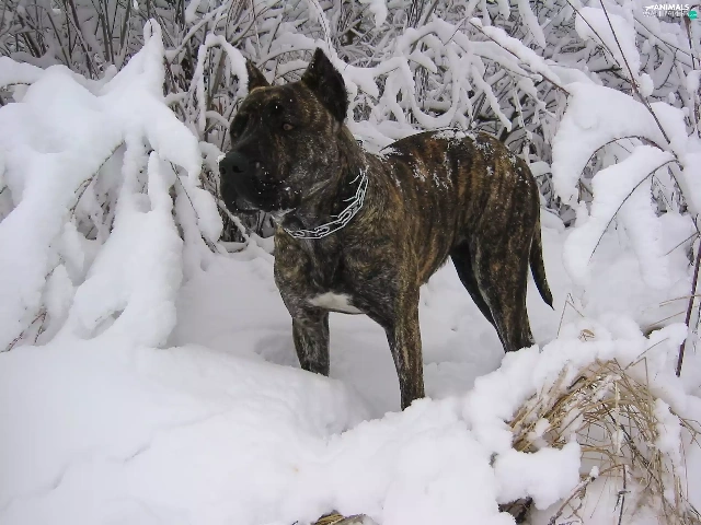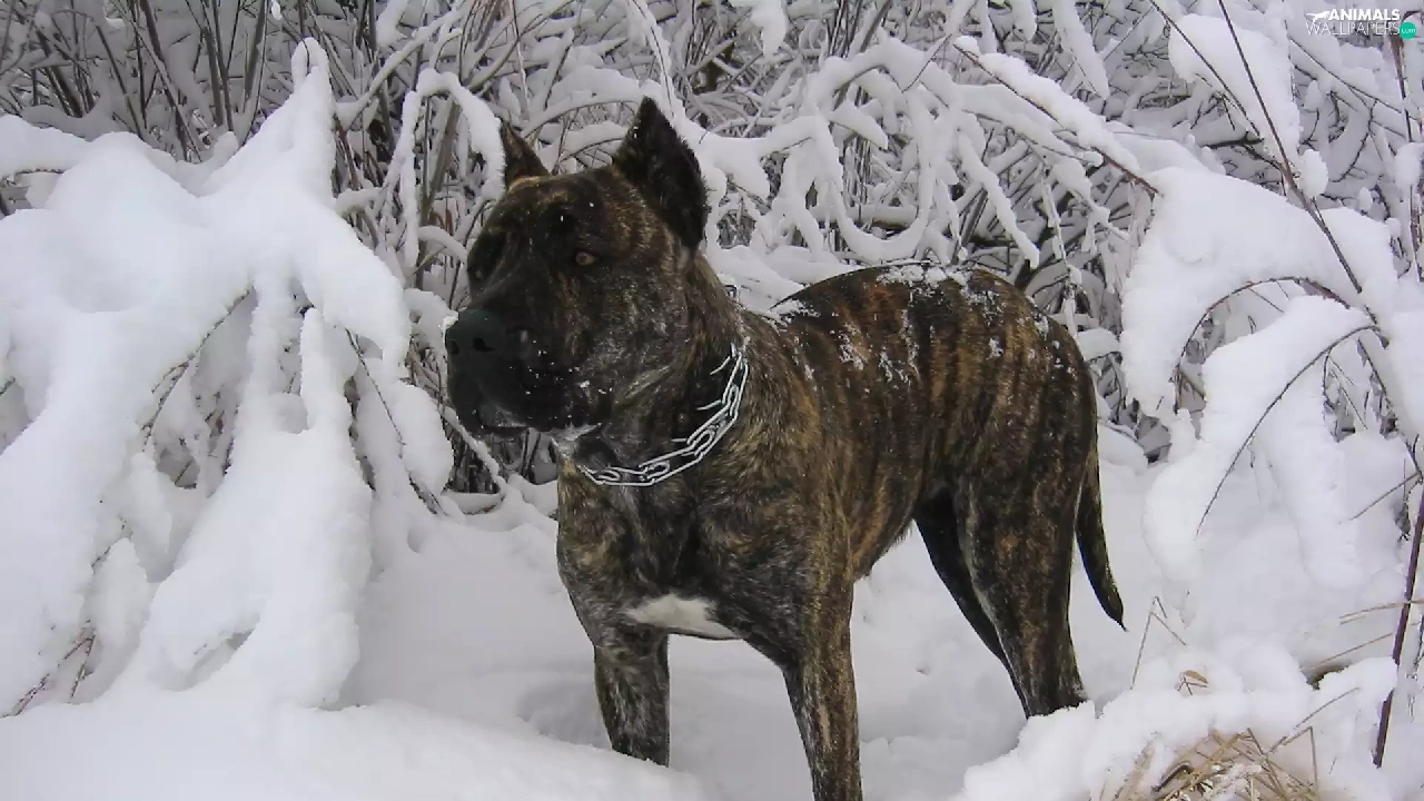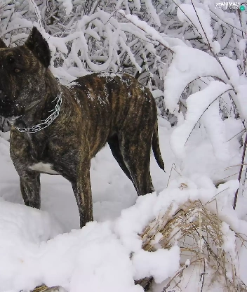 winter, Perro de Presa Canario, snow