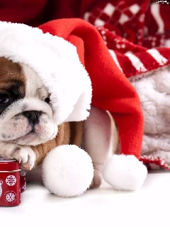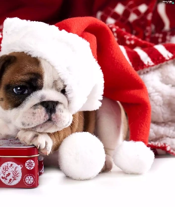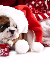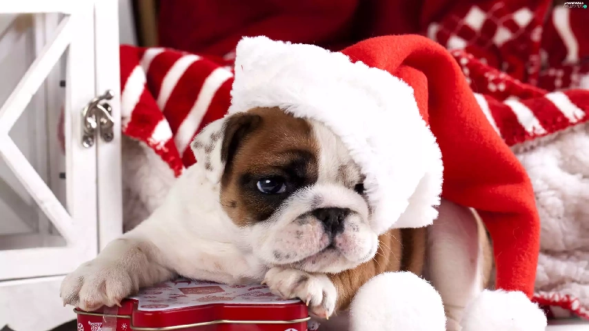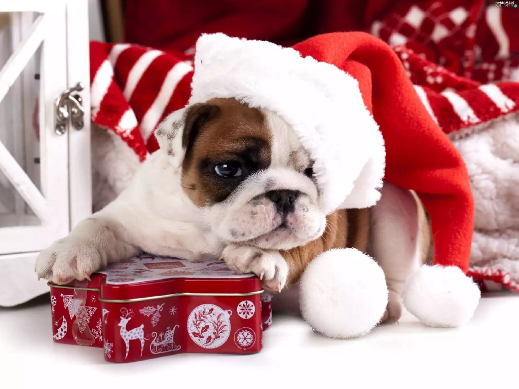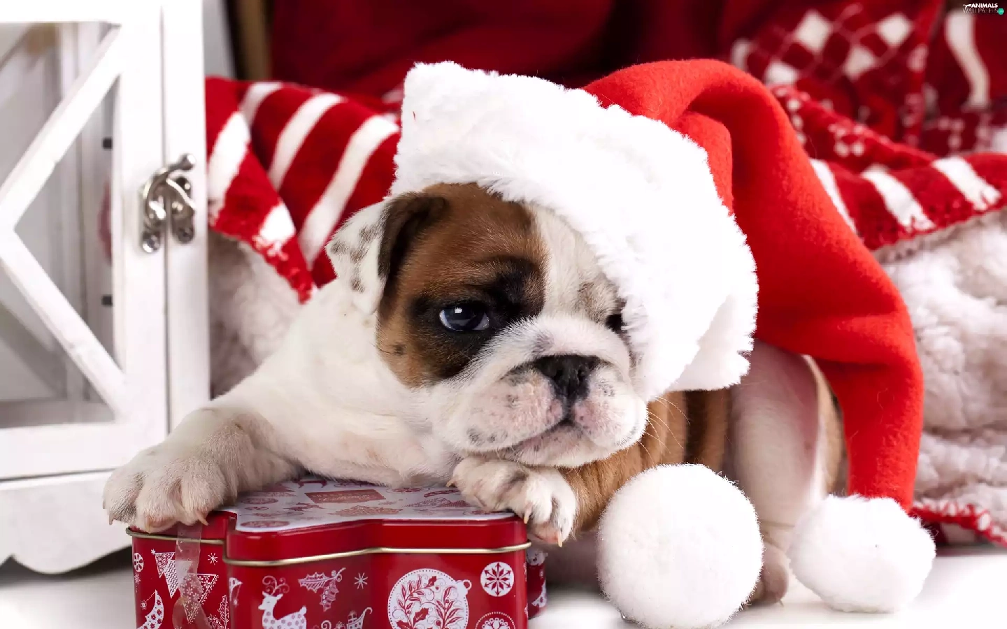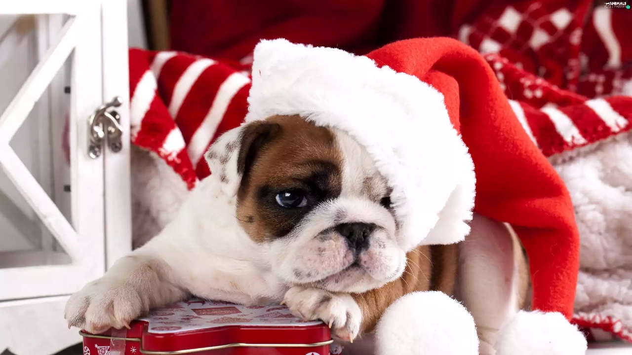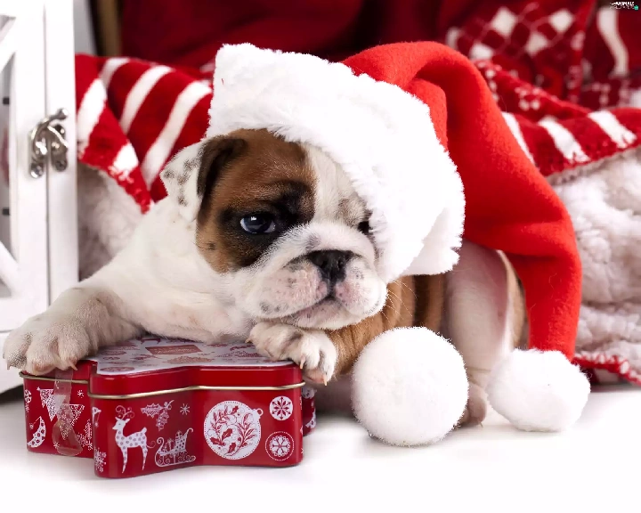 Nicholas, Present, Buldog, Hat, dog