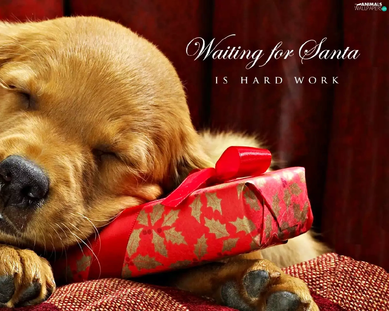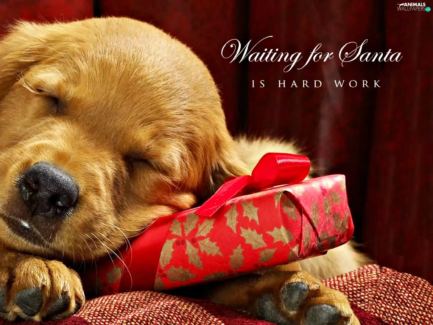 sleepy, Present, Golden Retriever, puppie
