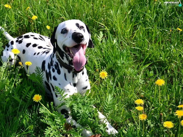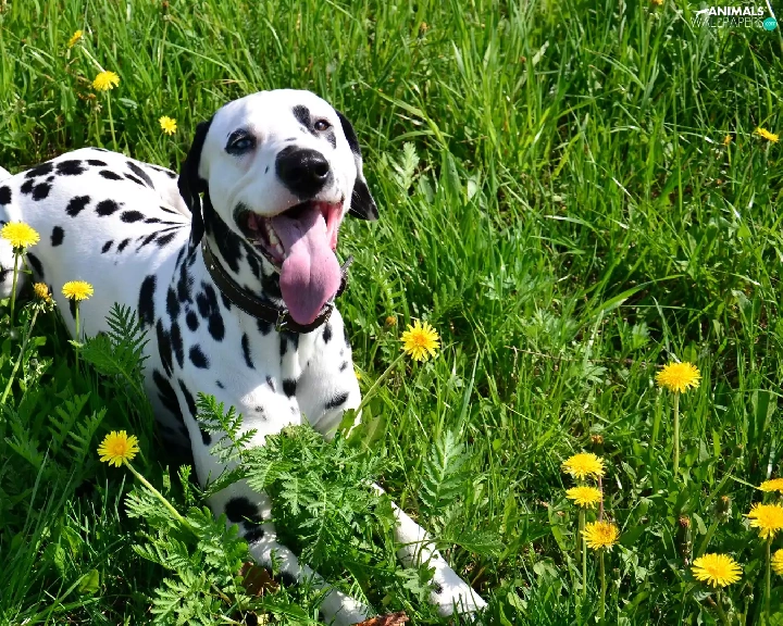 grass, puffball, Dalmatian, Tounge, dog
