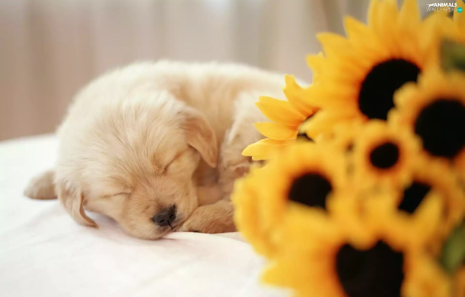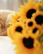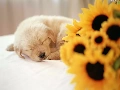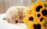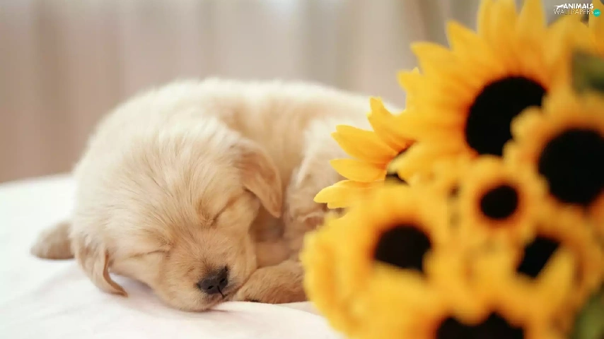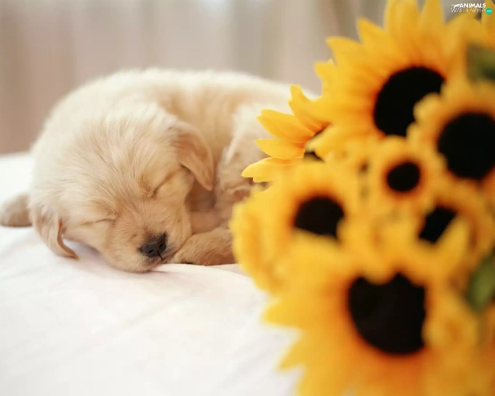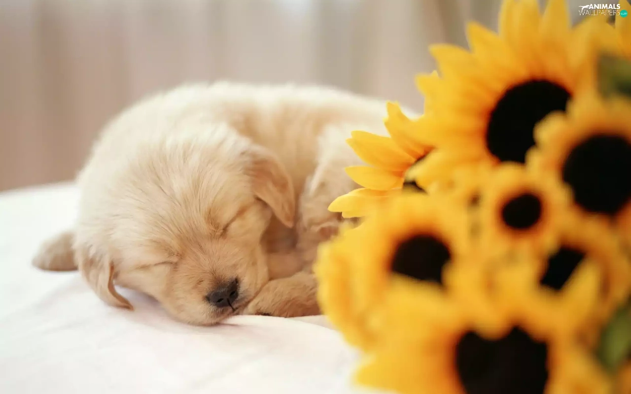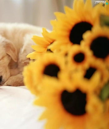 small, Flowers, sunflower, puppie