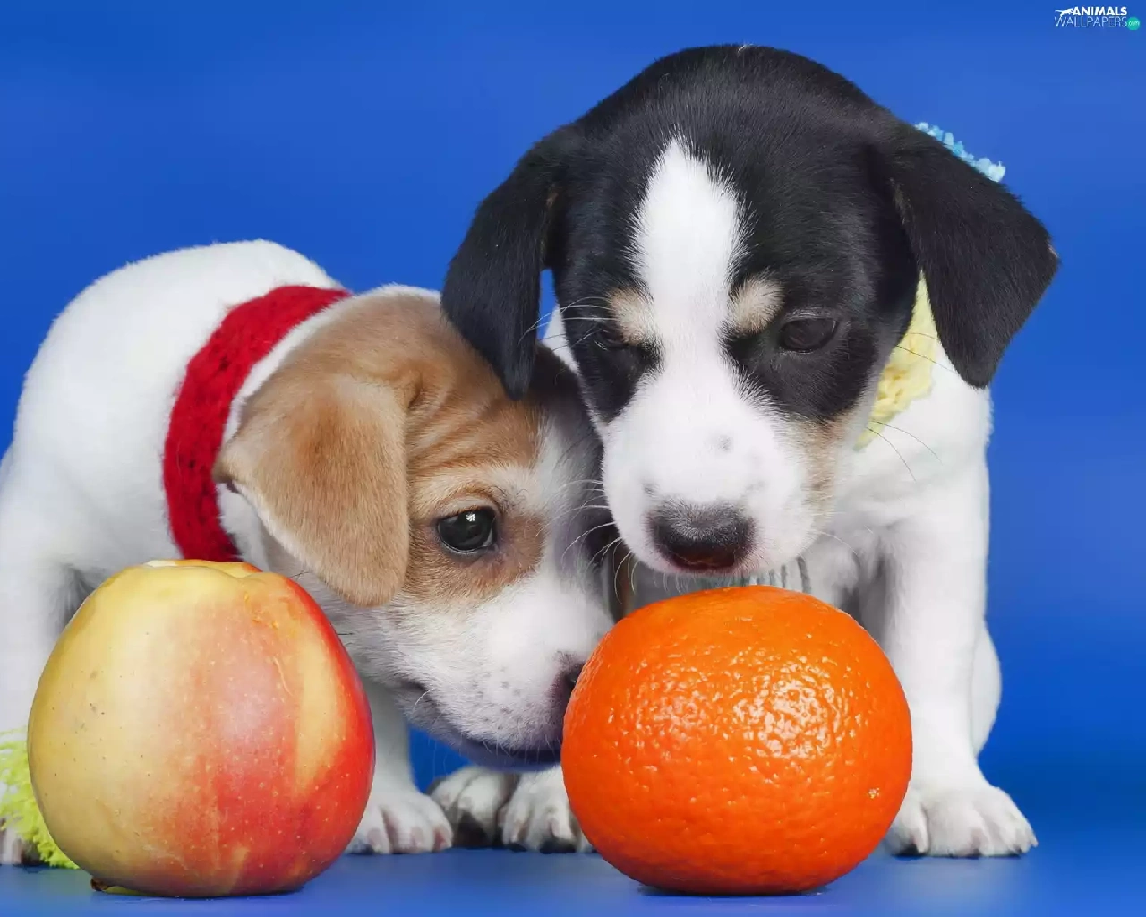 Dogs, Apple, orange, Puppies