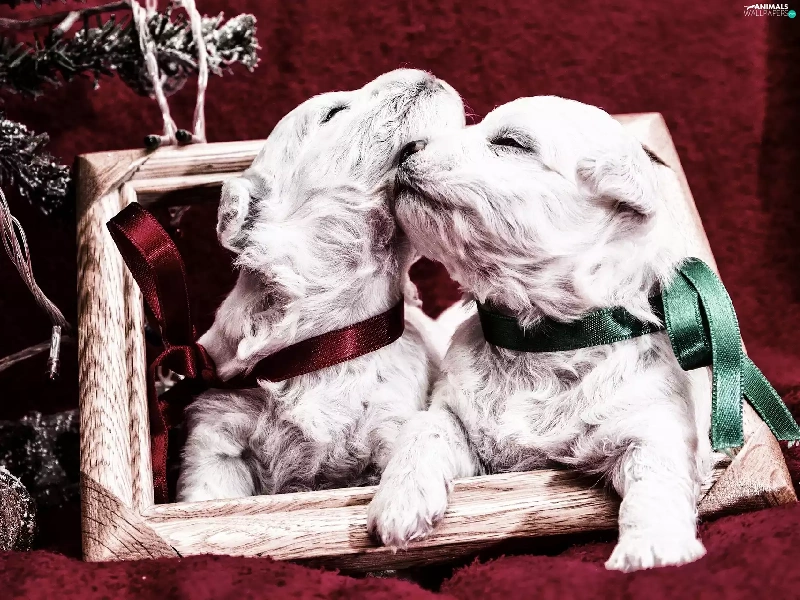 puppies, Wood, frame