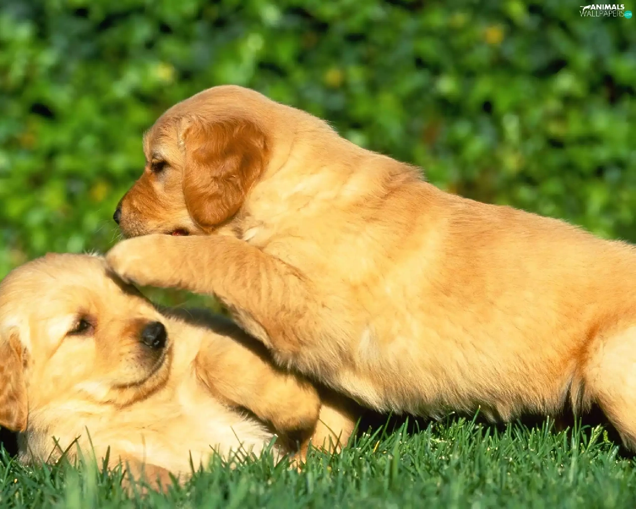 grass, Two cars, puppies