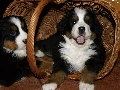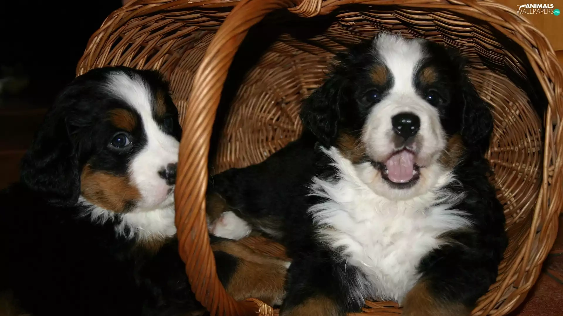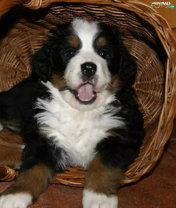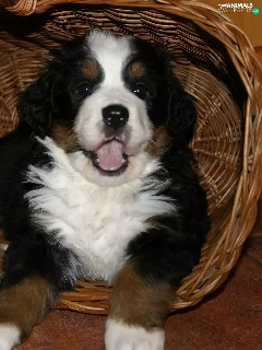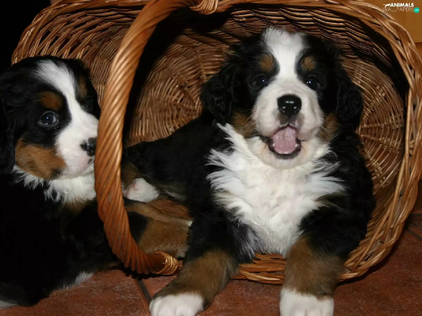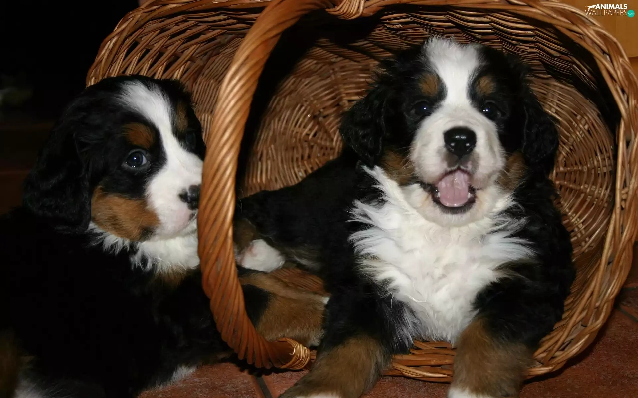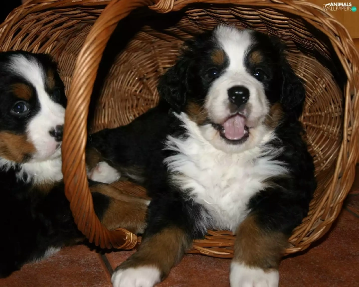 puppies, Two cars, basket, wicker, Bernese Mountain Dog, sweet