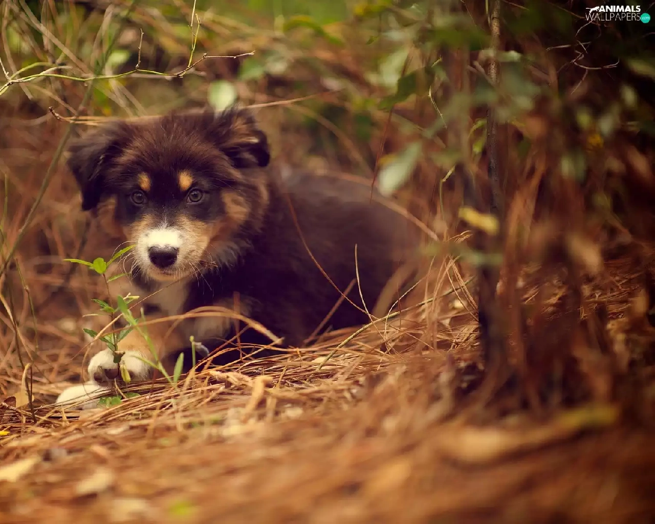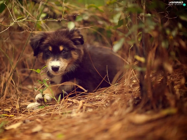 doggy, Puppy, Australian Shepherd, scrub