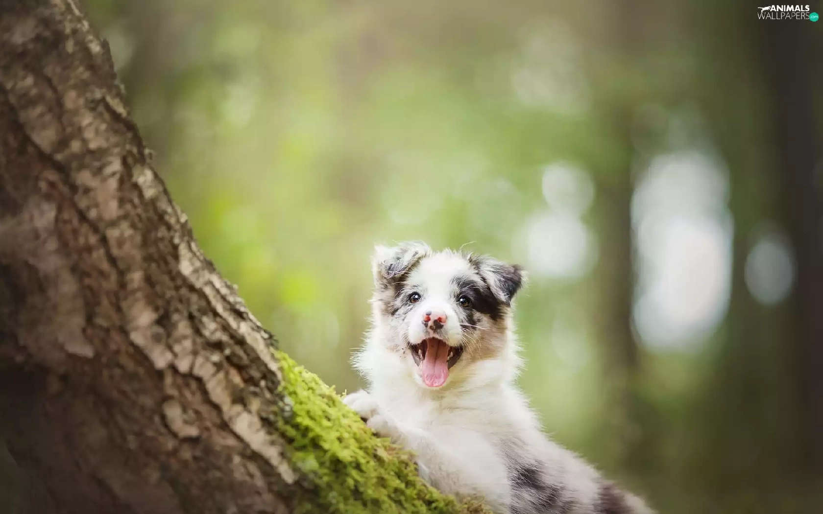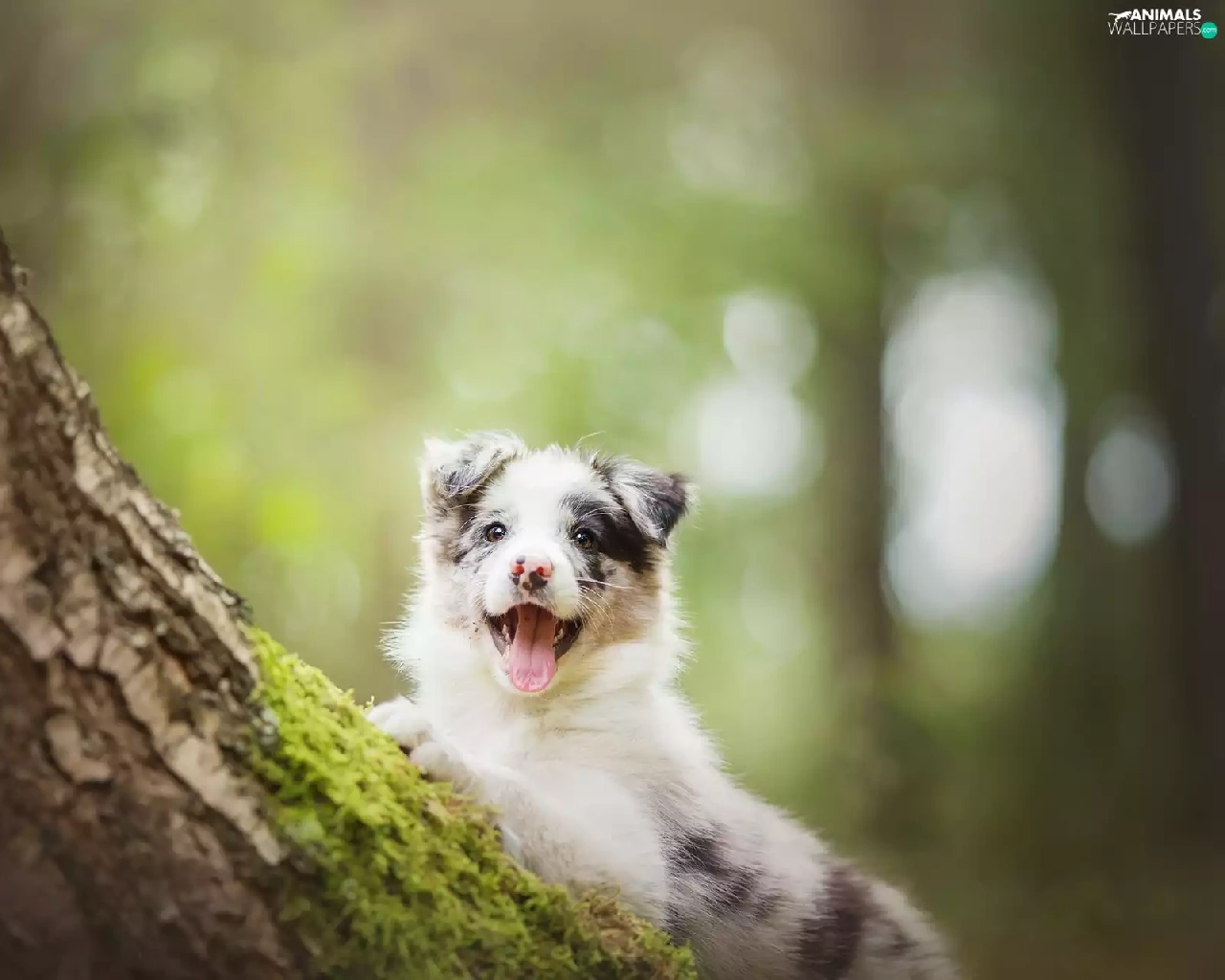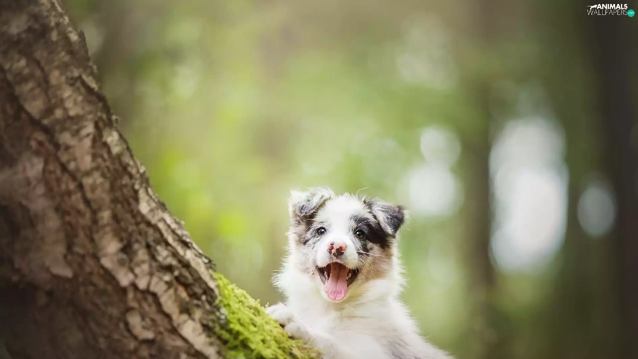 trees, Puppy, Border Collie, dog
