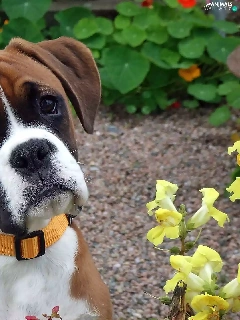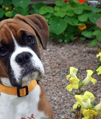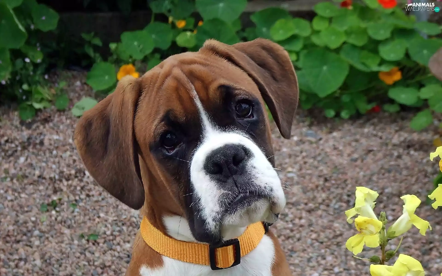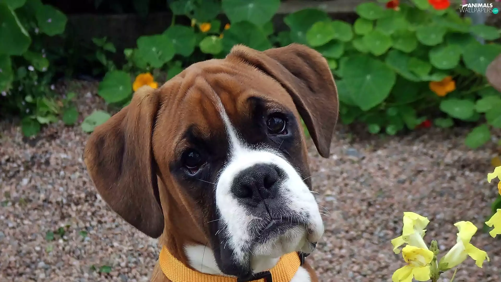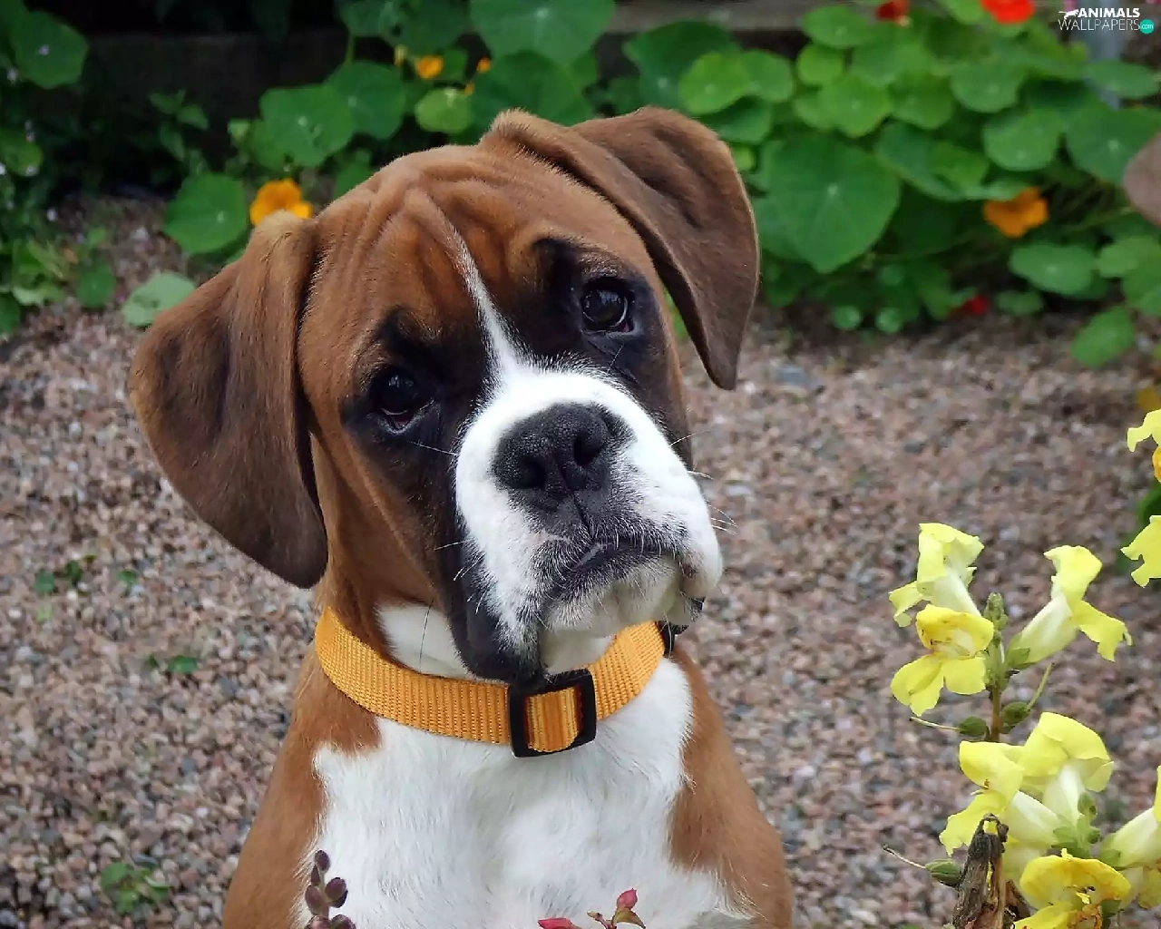 boxer, garden, blur, Puppy