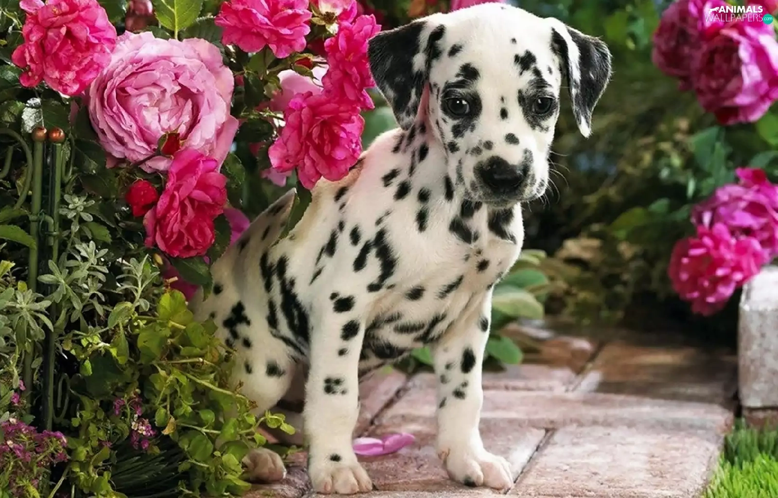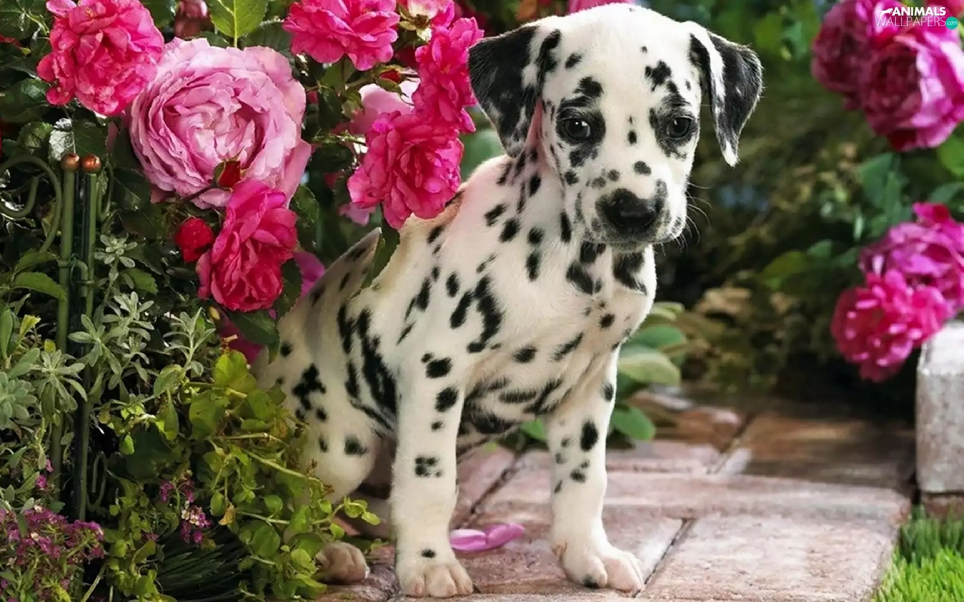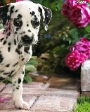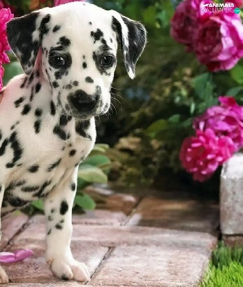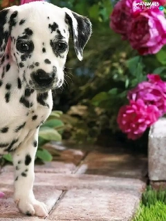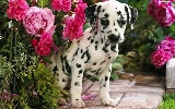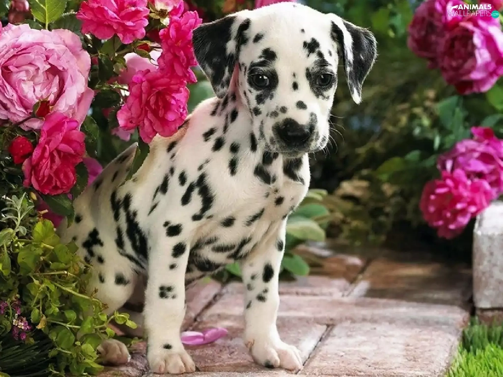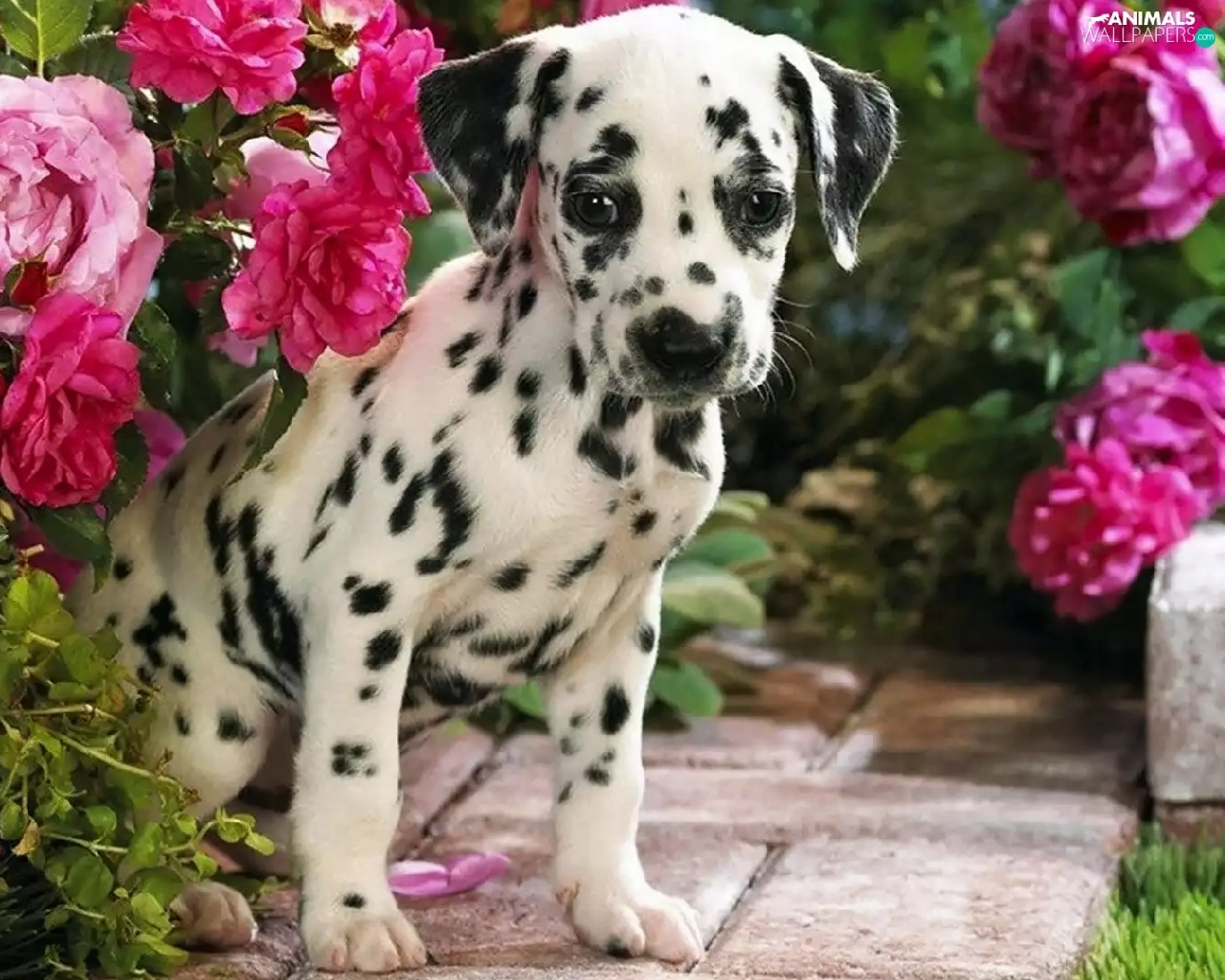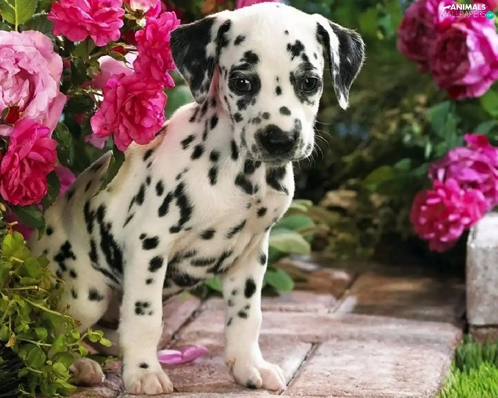 Dalmatian, roses, garden, Puppy