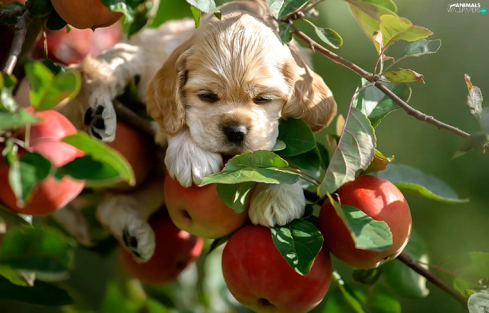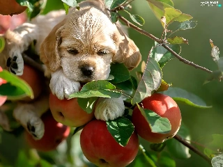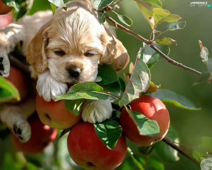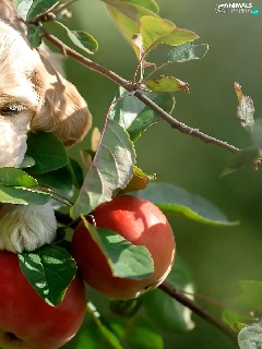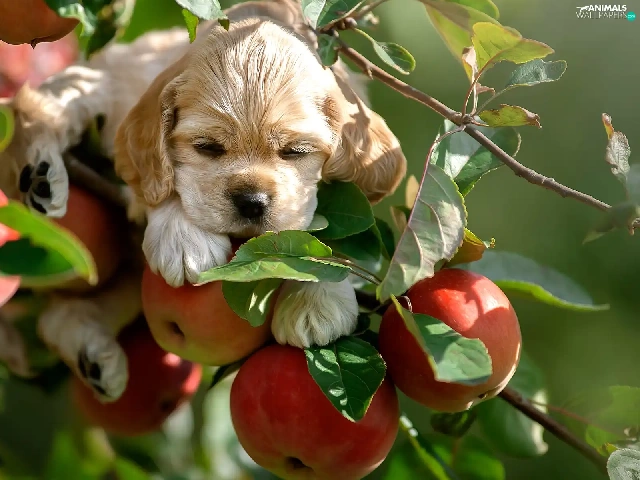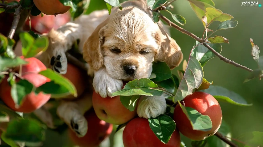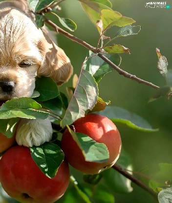 apple-tree, apples, Puppy, Twigs, dog
