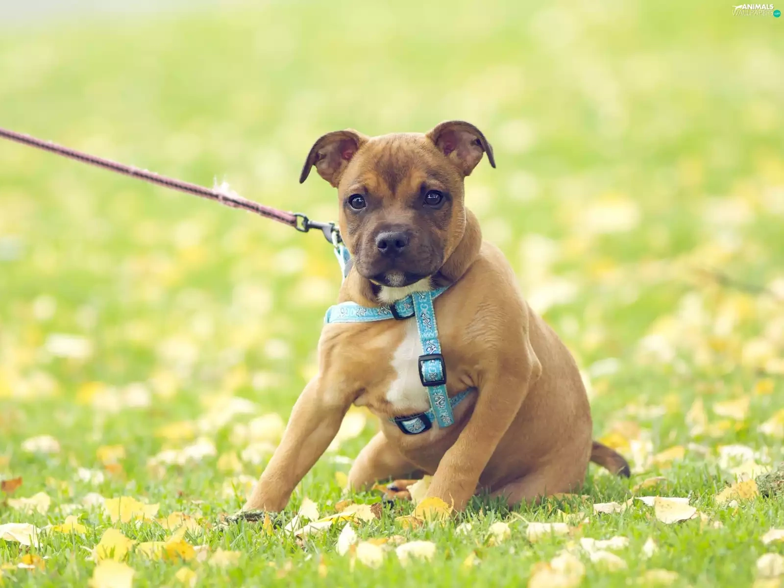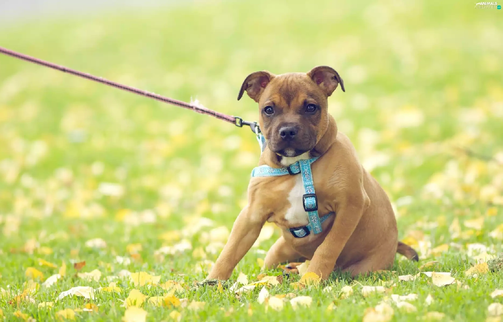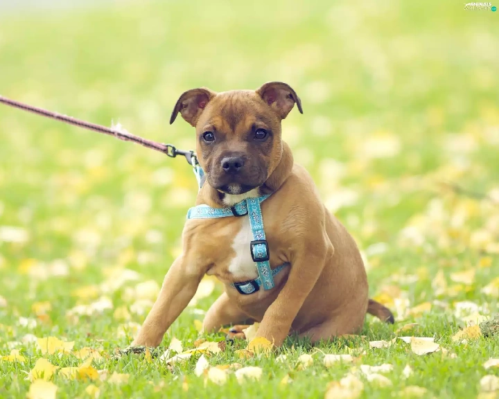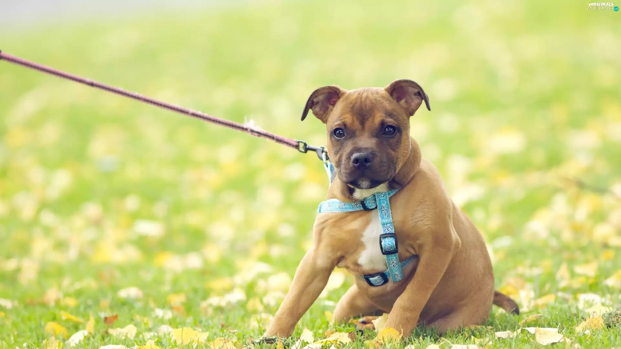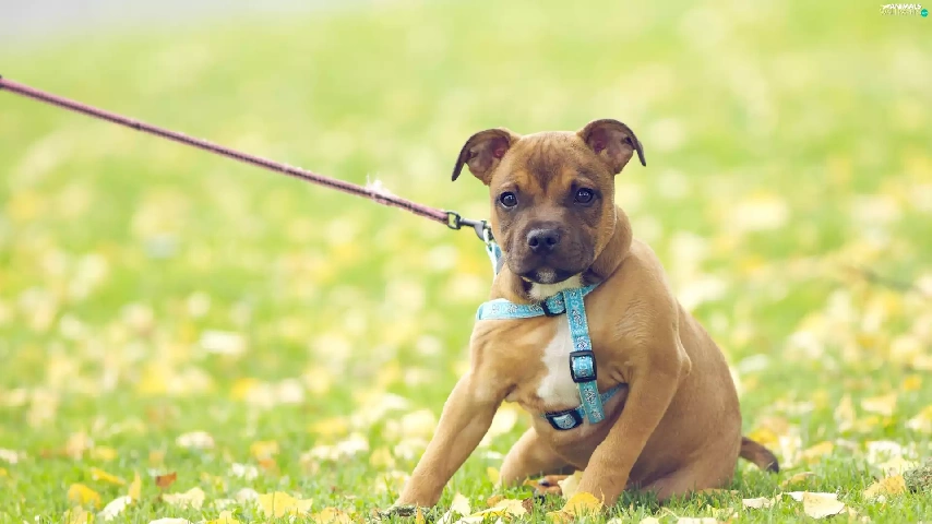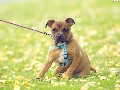 doggy, Meadow, Leash, Puppy
